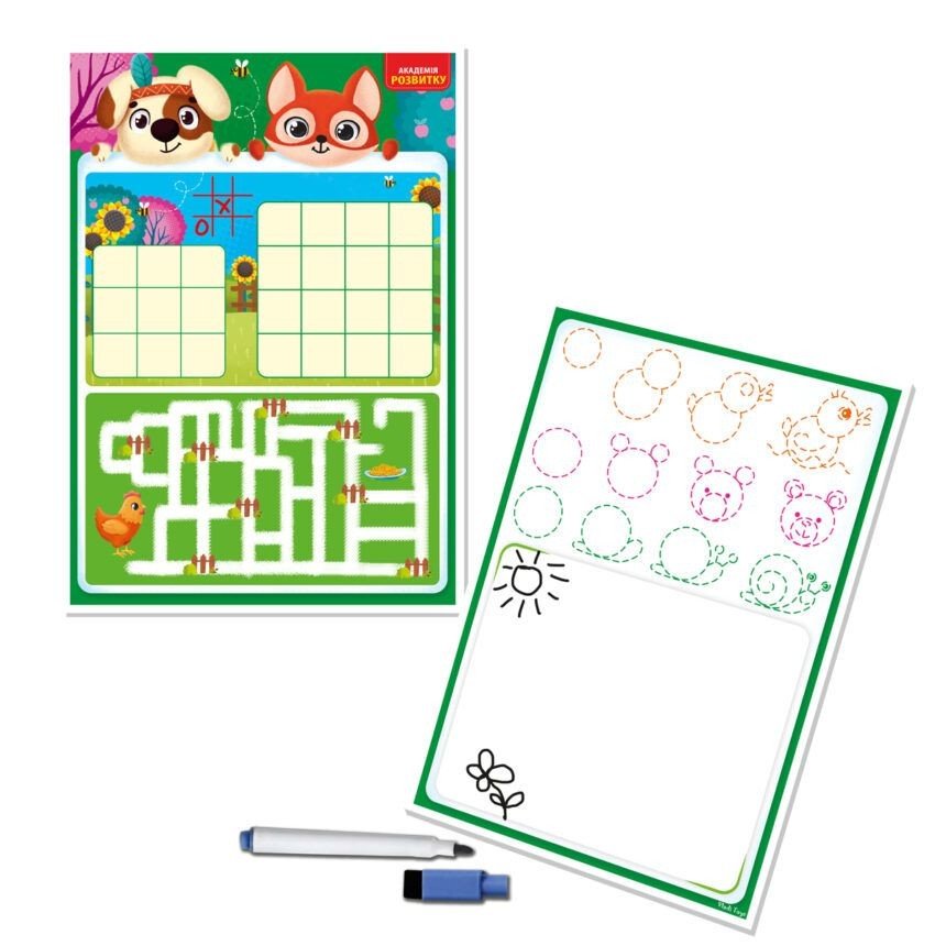 Бренд: Vladi Toys Упаковка: Плівка Колір: Різнобарв'я Габарити в упаковці: 0.5 x 34 x 24 см Країна виробник: Україна Матеріал: Комбінований Комплектація: Ігрова дошка, маркер