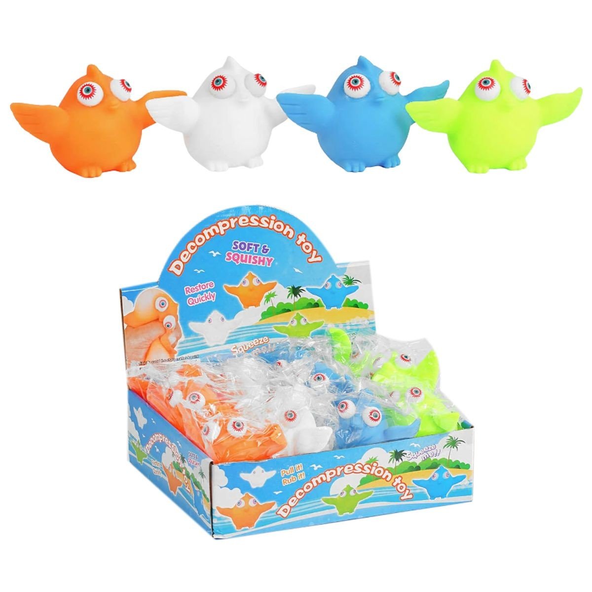 Іграшка-антистрес у вигляді милої пташки з піновим наповнювачем. Антистрес дуже мʼякий і приємний на дотик. Виконаний з якісних та міцних матеріалів. Розвиває дрібну моторику та чудово заспокоює нерви як дітям, так і дорослим. Розмір іграшки: 13х8х5 см. 12 штук в коробкці.