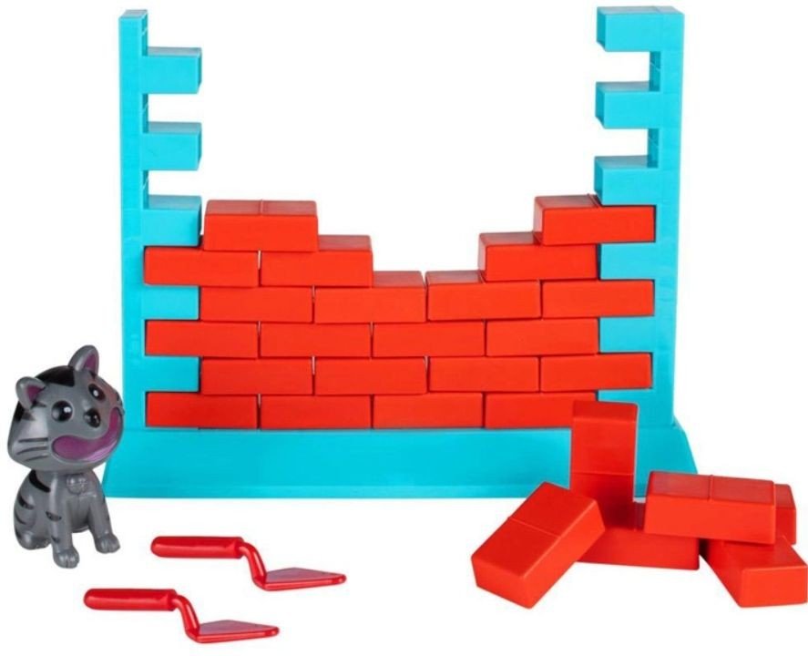 Гра для 2-4 гравців по типу популярної гри "Дженга"..Зберіть підставку, побудуйте стіну з цегли і встановіть на неї кицю. Визначте, хто зробить перший хід. По черзі розбирайте стіну за допомогою кельми. Програв той учасник, в чий хід киця впала. Гра підходить дітям від 6-ти років.