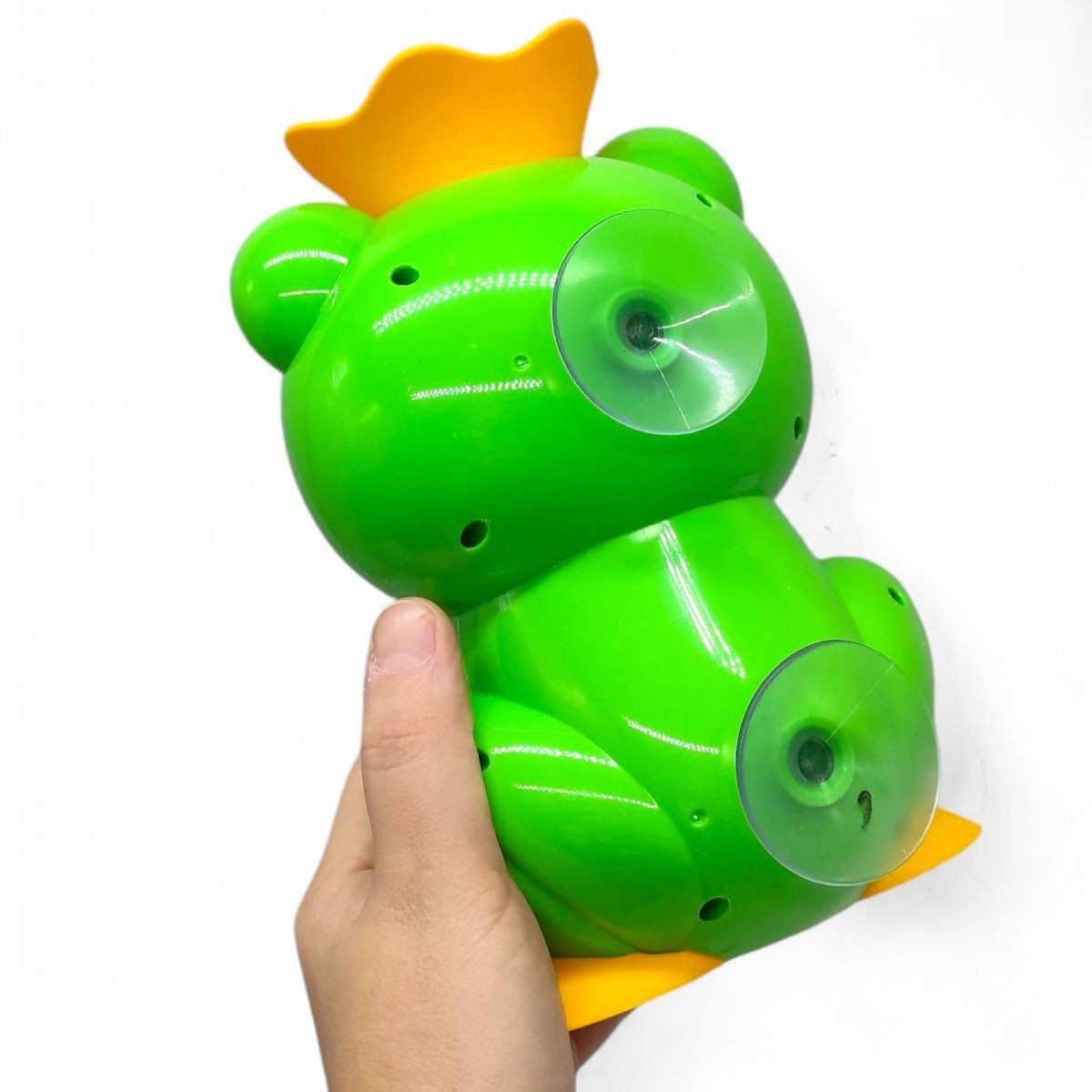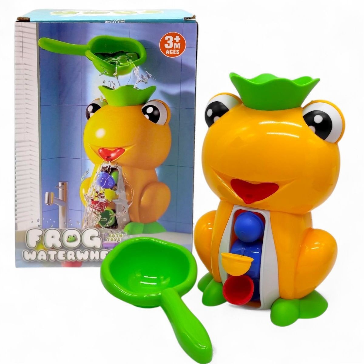 Іграшка для ванни "Frog Waterwheel" перетворить купання на веселу гру! Достатньо налити воду в корону жабки, щоб яскраве колесо почало крутитися. Малюкові буде цікаво спостерігати, як вода рухається, що допоможе відчувати менше стресу під час купання. Іграшка легко кріпиться до ванної завдяки присоскам та підходить для щоденних водних забав. У комплекті є зручна ложечка для наливання.