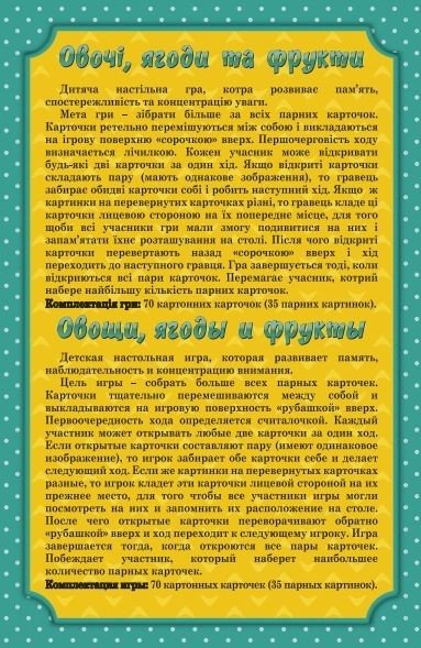 Бренд: Artos games Упаковка: Коробка Колір: Різнобарв'я Вага з упаковкою: 350 г Габарити в упаковці: 15.5 x 5.5 x 24 см Габарити без упаковки: 16 x 6 x 24 см Країна виробник: Україна Матеріал: Комбінований Комплектація: 70 карток