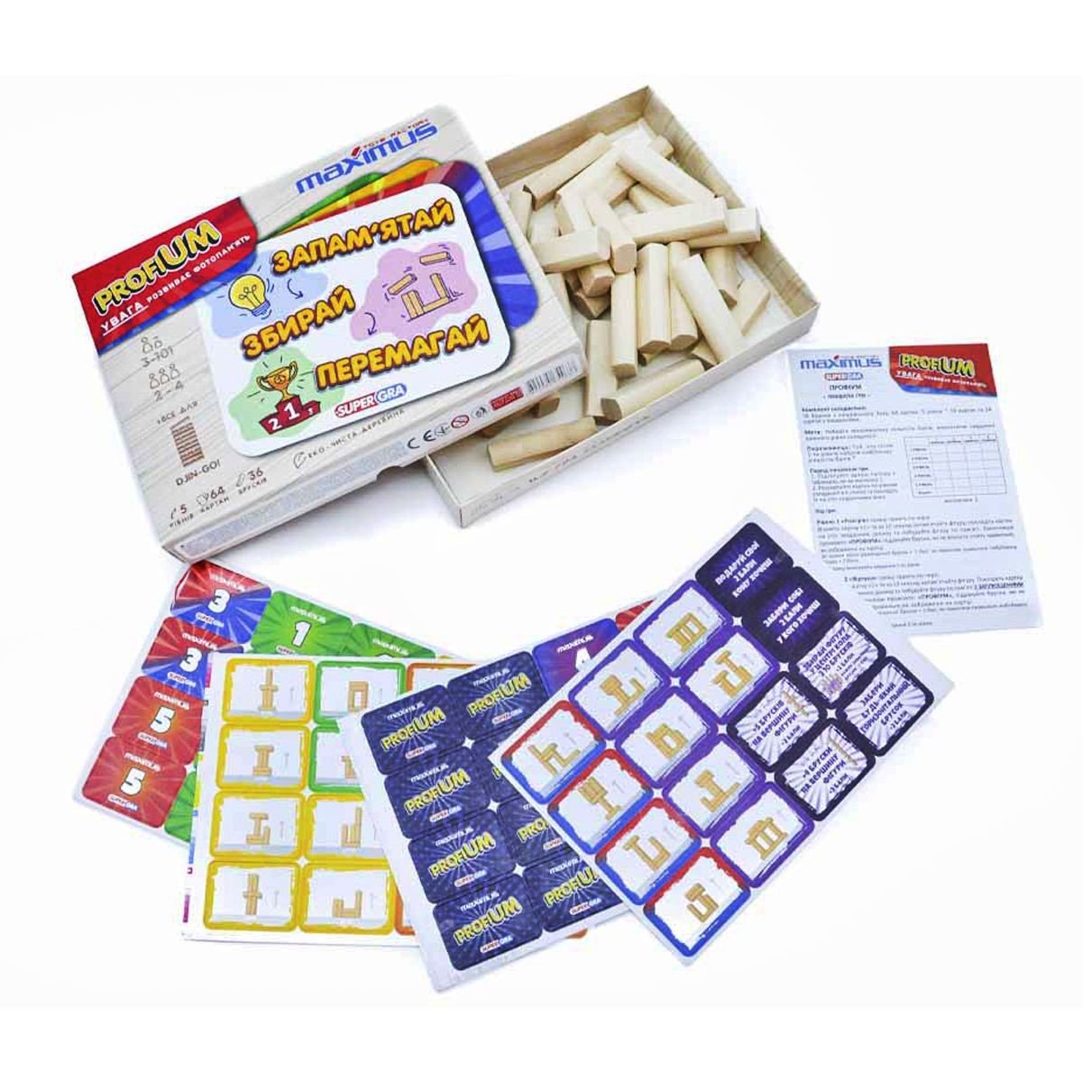 Захоплююча розвиваюча гра "ProfiUM". Відмінно розвиває пам'ять, увагу, мислення. Є 5 рівнів гри. Розрахована на 2-4 гравців від 3-х років.