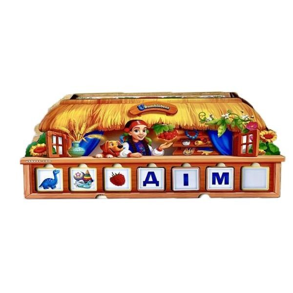 Навчальна гра, що сприяє розвитку різноманітних навичок у дітей. Процес відгадування ребусів за першими або останніми буквами слів-зображень у віконцях не тільки розвиває лексичний запас, а й стимулює логічне мислення та фантазію. У наборі: деревʼяна коробочка; основа планшета; 70 карт із завданнями; 42 літери; 9 нагород за вірно вгадане слово.