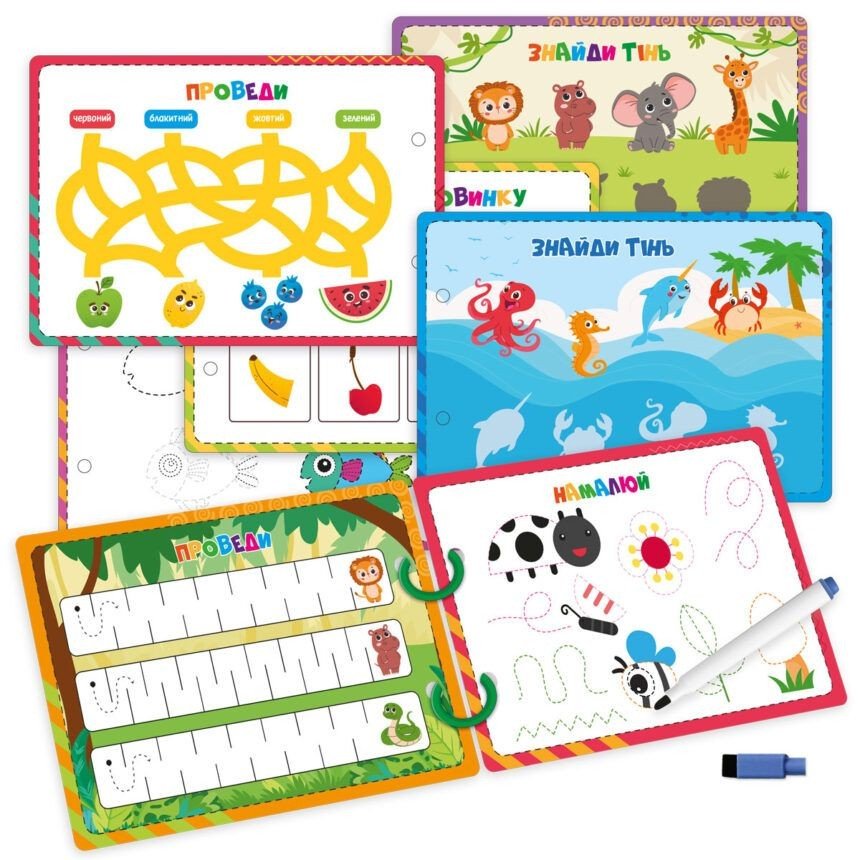 Гра розвиваюча (картки на кільцях) пиши-стирай "Левеня"