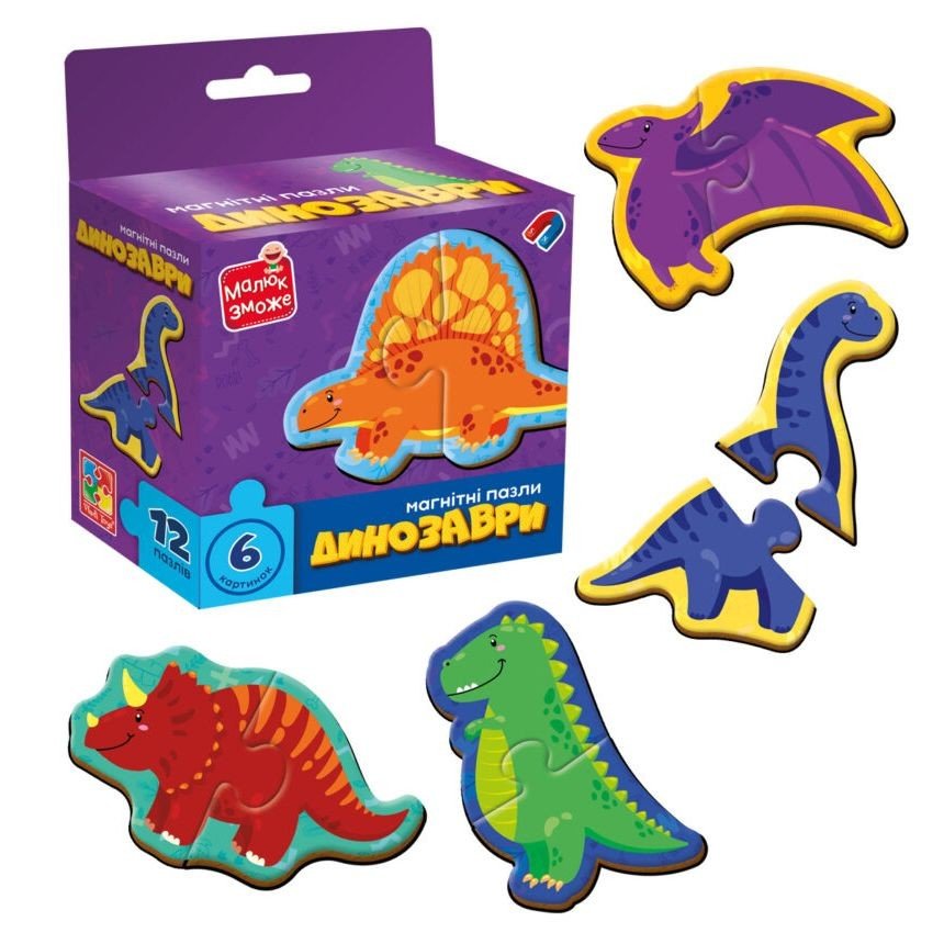 Барвисті пазли з тваринками. Така іграшка є веселою можливістю поглянути на те, на що здатні магніти та як гарно деталі тримаються між собою. Ігри з пазлами чудово розвиватимуть дрібну моторику рук, увагу, та допоможуть дитині вивчити динозаврів. Виготовлено з якісних та безпечних матеріалів. Рекомендовано для дітей старше 3 років.