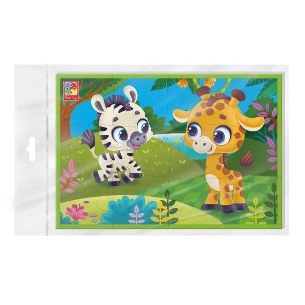 Опис Гра розвиваюча мʼякі пазли А5. Зебра та жираф.