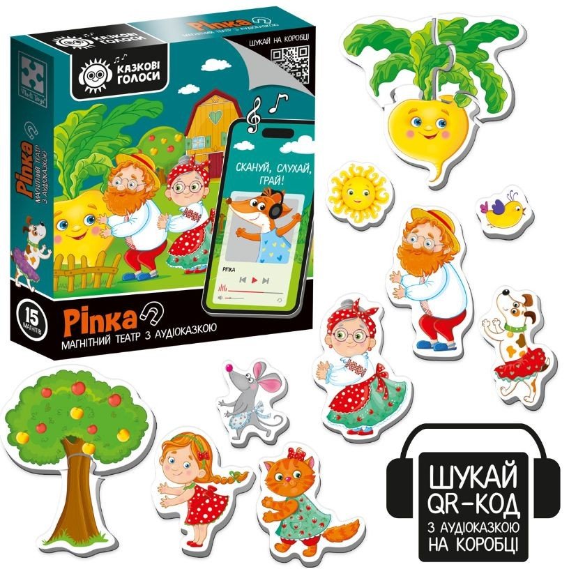 Гра + казка = Гра настільна Vladi Toys магнітний театр з аудіоказкою Казкові голоси. Найперші казочки для малюка з можливістю пограти і влаштувати спектакль за допомогою магнітних персонажів під прослуховування казки, і просто включити послухати казочку, коли батьки зайняті. Персонажі чудово розміщуються на магнітній поверхні, в якості якої може виступити, наприклад, магнітна дошка чи холодильник. Шукай аудіоказку за QR-кодом на коробці, скануй, переходь за посиланням та слухай.