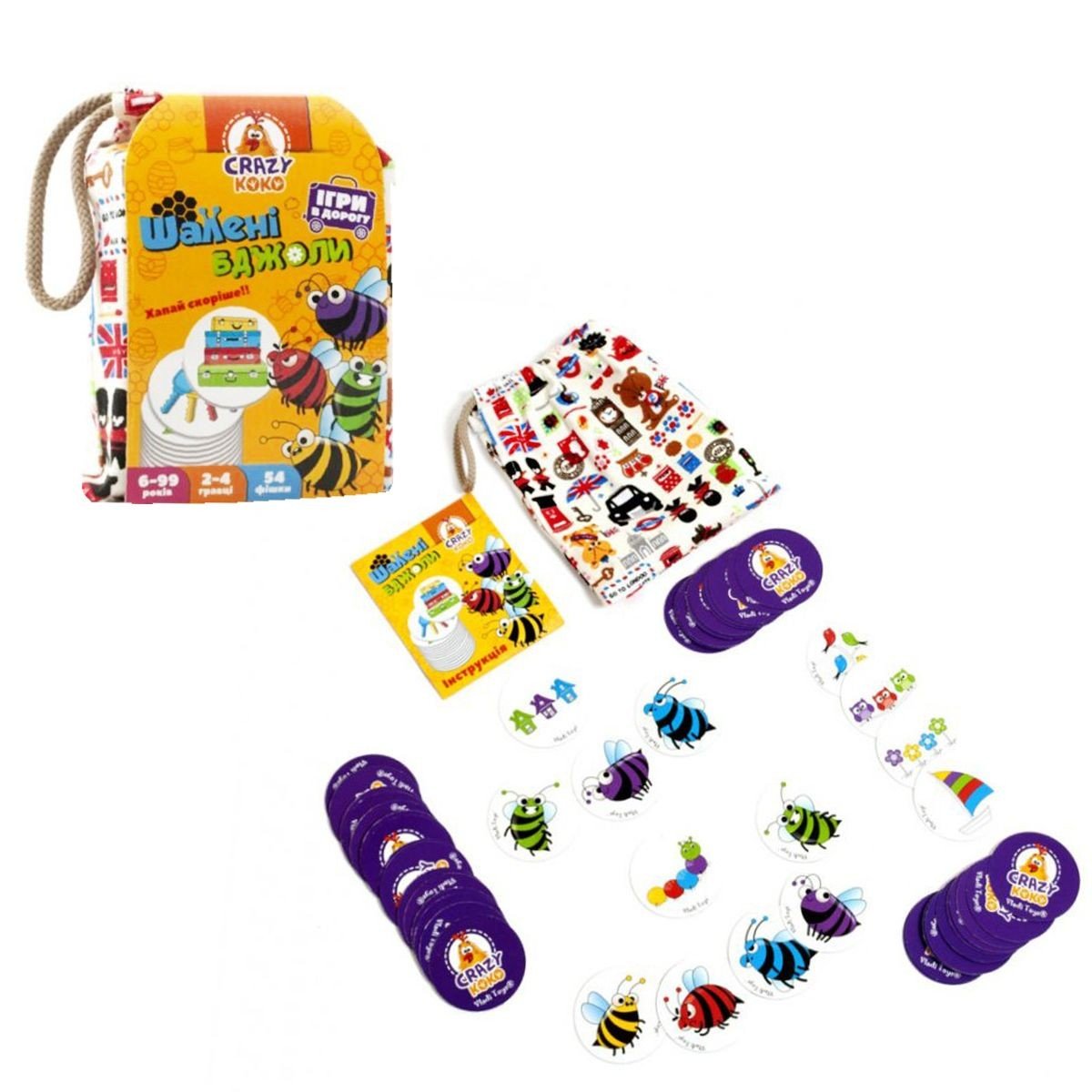 Захоплююча гра "Божевільні бджоли" призначена для 2-4 гравців, віком від 6-ти років. Мета гри - керуючись інструкцією, зібрати якомога більше фішок з різнокольоровими малюнками. У комплекті: тканинний мішечок, 54 фішки і інструкція. Розмір фішки: 6 см. Колір і дизайн мішечка попадається рандомно.