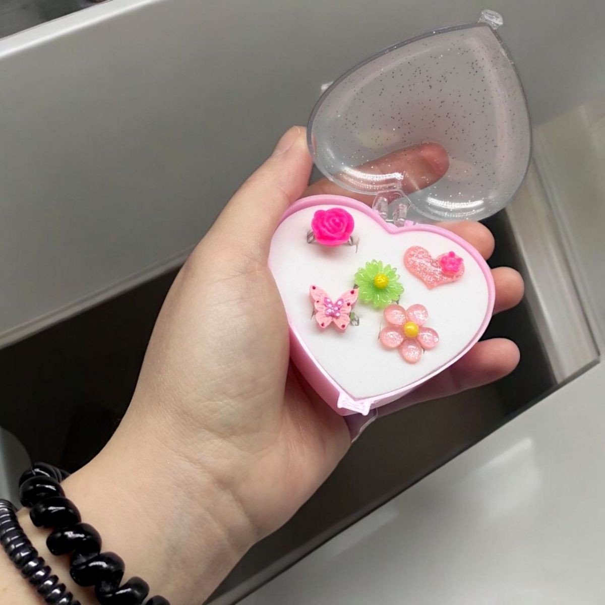 У комплект набору Fairy Flower 5 чудових кілець з незвичайним дизайном. Кожен день можна надягати нове: з трояндочкою, сердечком, ромашкою, метеликом і квіточкою. Набір кілець Fairy Flower не містить дорогоцінних і напівкоштовних каменів і металів. Виконаний з якісних матеріалів: • Пластик • Залізо • Стрічка При виборі прикрас для маленької дівчинки, вам варто звернути увагу на набір кілець Fairy Flower. Ці вироби підходять для дітей віком від трьох років і старше. З колечком з набору Fairy Flower ваша маленька модниця буде виглядати вишуканою і стильною.