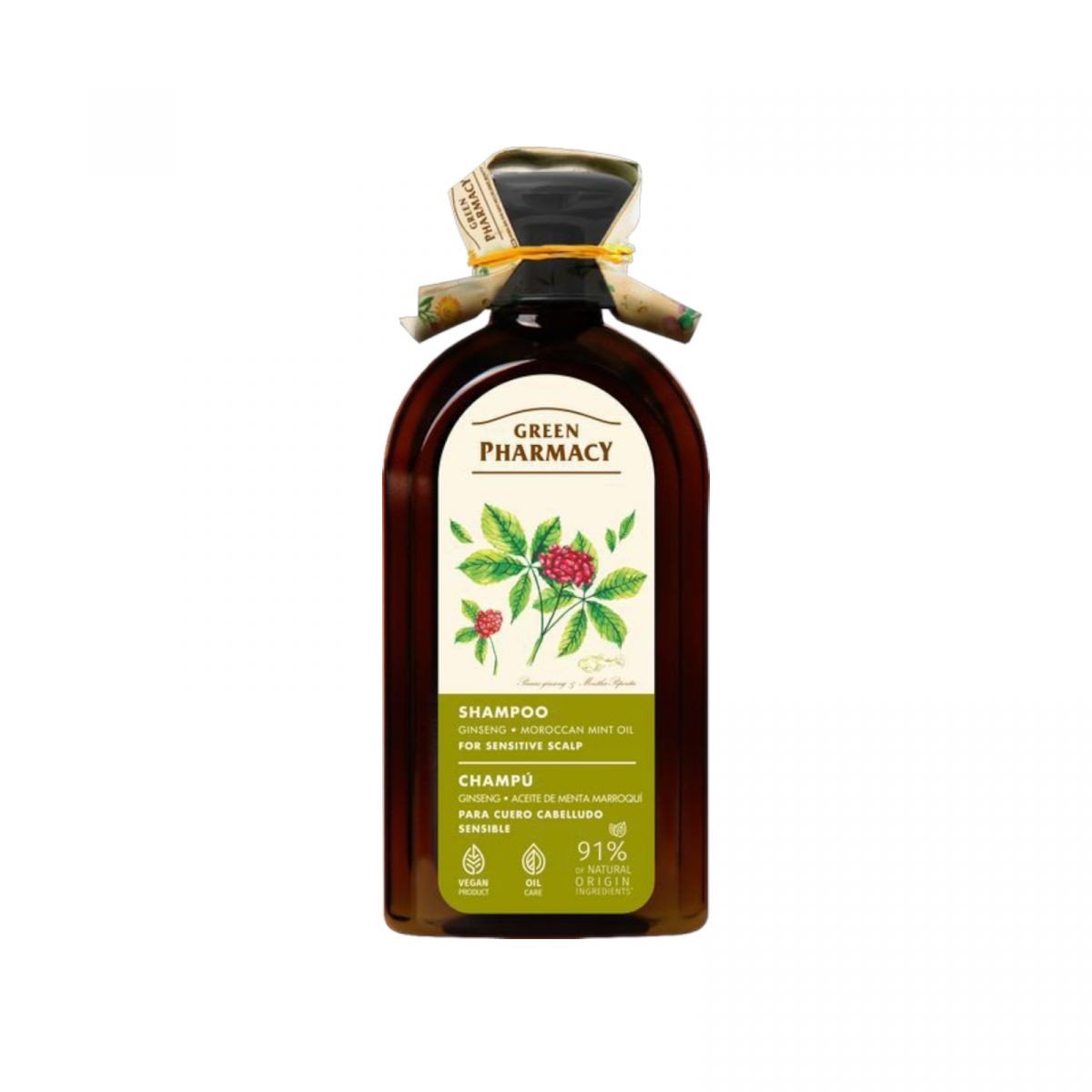 Опис Green Pharmacy шампунь 350мл Женьшень/марокканська мята для чутливої шкіри голови