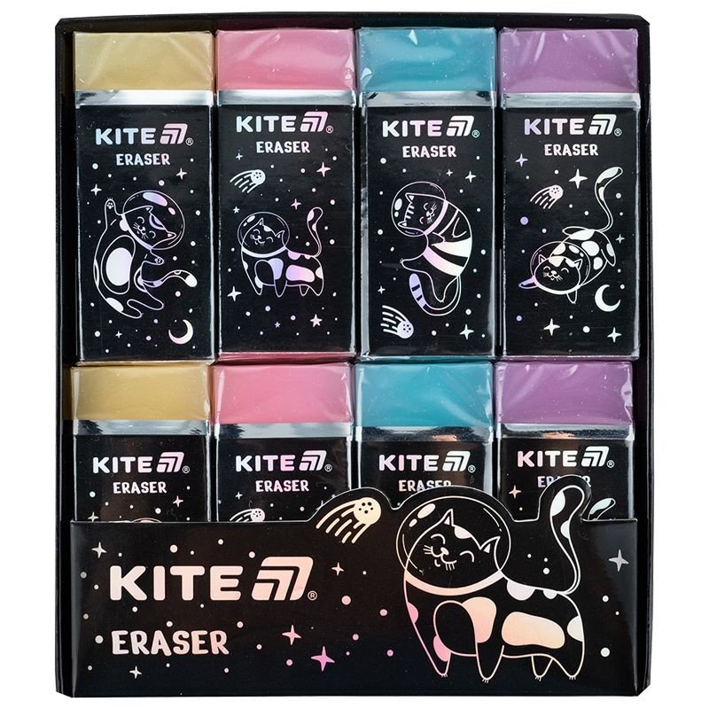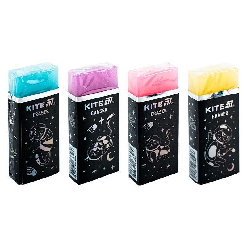 Гумка кольорова з глітером Kite K24-144 Universe легко видаляє сліди графітного олівця. Завдяки прямокутній формі, її комфортно тримати в руці, а куточками зручно виправляти дрібні деталі малюнка. Особливості: • легко видаляє сліди графітного олівця завдяки високоякісним компонентам; • стирає м'яко та рівномірно, не пошкоджуючи поверхню паперу; • гумка не кришиться, не розмазує малюнок і не сприяє утворенню паперового пилу; • матеріал – термопластична гума, не містить шкідливих речовин та має нейтральний аромат; • яскравий дизайн з сяючим глітером, кожна гумка має зручний та стильний картонний тримач; • ефектна упаковка – яскравий кольоровий дисплей.
