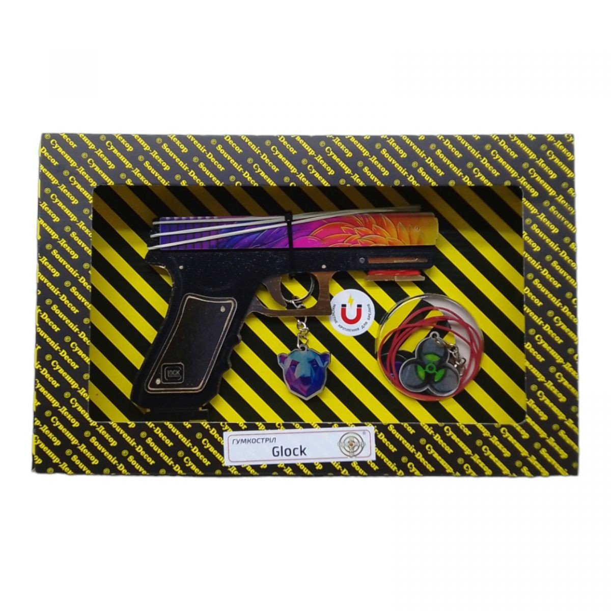 Бренд: Сувенир-Декор Упаковка: Коробка Колір: Різнобарв'я Вага з упаковкою: 245 г Габарити в упаковці: 5 x 29.5 x 19 см Габарити без упаковки: 1 x 25 x 13 см Країна виробник: Україна Матеріал: Дерево Комплектація: Гумкостріл, гумки, 2 брелоки, наклейки