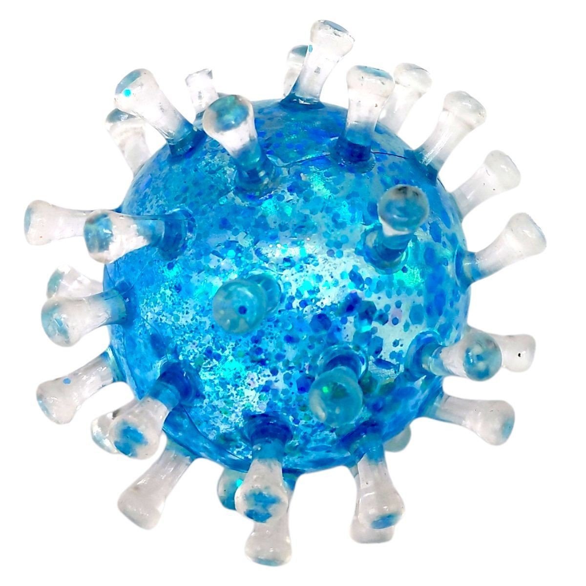 Яскрава жуйка-тягнучка для рук у вигляді вірусу підніме настрій як малюку, так і дорослому. Виконана із напівпрозорого силікону з блискітками. Іграшку можна стискати, розтягувати, а вона знову прийматиме свою початкову форму. Все завдяки специфічному гелеподібному наповнювачу. Розмір антистресу - 7х7х7 см. Виготовлено з якісних та безпечних матеріалів.
