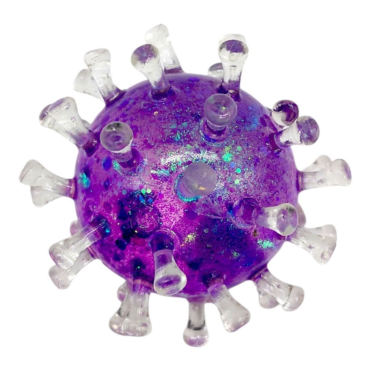 Яскрава жуйка-тягнучка для рук у вигляді вірусу підніме настрій як малюку, так і дорослому. Виконана із напівпрозорого силікону з блискітками. Іграшку можна стискати, розтягувати, а вона знову прийматиме свою початкову форму. Все завдяки специфічному гелеподібному наповнювачу. Розмір антистресу - 7х7х7 см. Виготовлено з якісних та безпечних матеріалів.