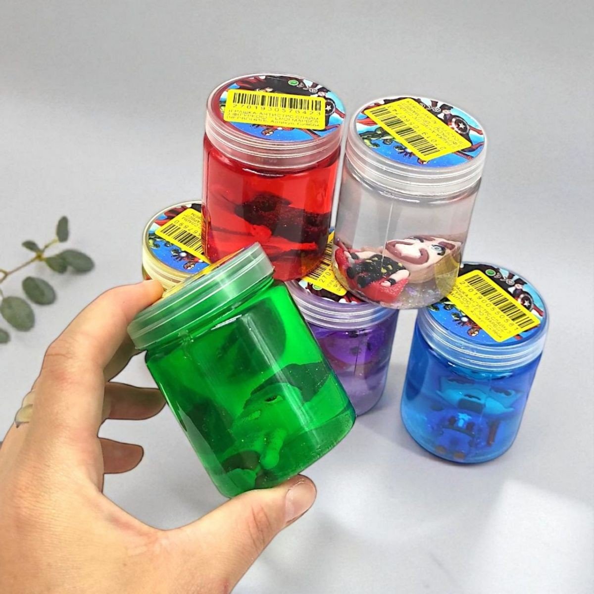 Лизун з іграшкою всередині "Марвел". У серії присутні різні забарвлення та всі слайми переливаються блискітками. Запакований у надійну баночку, яка не пропускає повітря що допомагає лизуну не засохнути. Знімає стрес та допомагає розслабитися. Рекомендовано для дітей старше 3 років.
