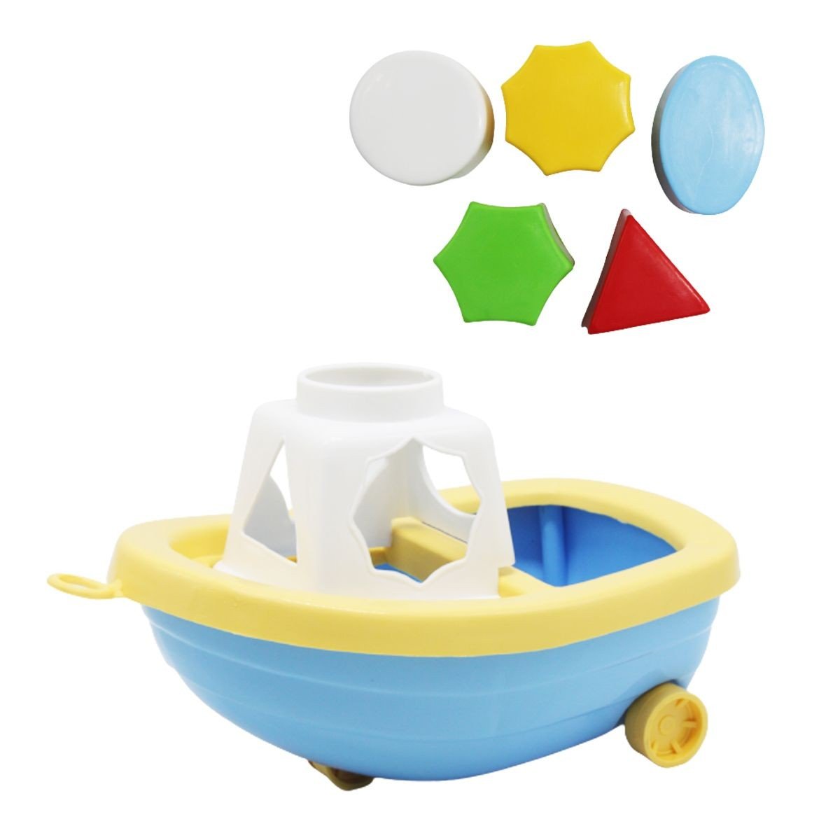Яскрава пластикова іграшка поєднала у собі два елементи - гарну іграшку та сортер. Кораблик на коліщатках, до нього можна привʼязати мотузку і возити за собою. На каюті розташовані отвори як різних геометричних фігур. У комплекті є 5 елементів сортера різних кольорів та форм. Розмір корабля 11х20х13 см.