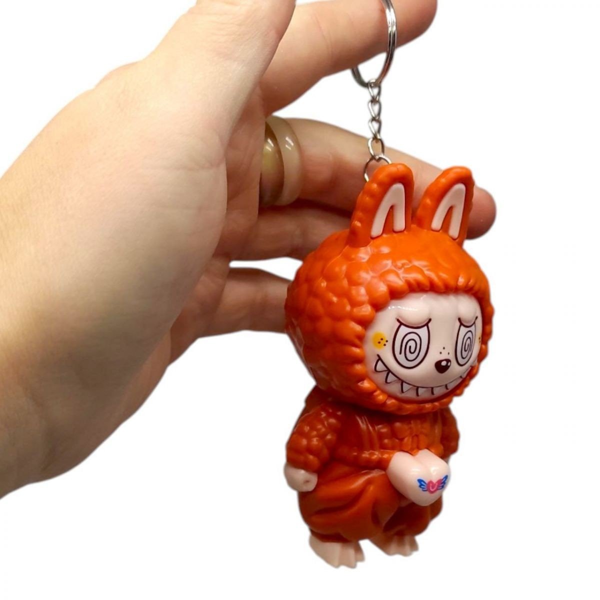 Жахливо милий брелок у вигляді Лабубу. Пластикова іграшка з цікавим механізмом — натискаючи на кнопку іграшка змінює своє обличчя (є три варіації лиця лабубу). Ідеально підійде в якості прикраси для сумки або одягу, також можна прикріпити до звʼязки ключів. Розмір фігурки - 11 см.