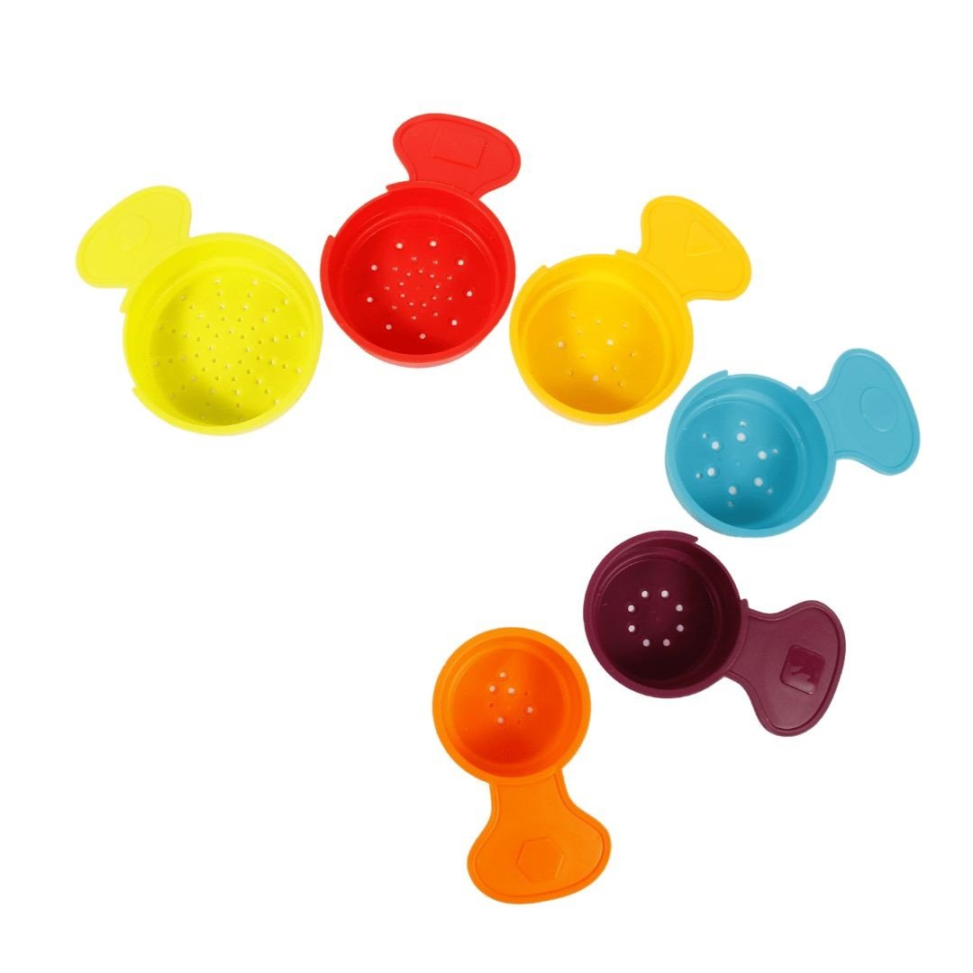Ігровий набір з 6-ти чашечок з отворами в денці, для гри у ванні. Іграшка допомагає стимулювати зорово-моторну координацію малюкам, які вже почали сидіти та повзати. Розвиває дрібну моторику рук та тактильні відчуття. Яскраві кольори привернуть увагу дитини та збільшать інтерес до навчання. Також підійдуть для гри в пісочниці.