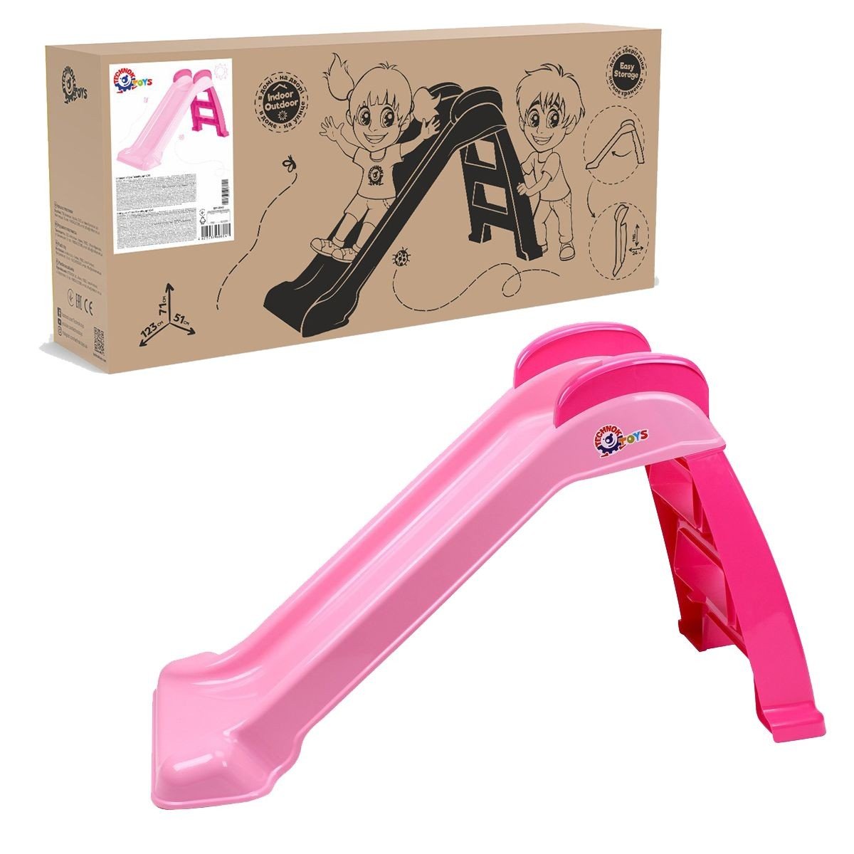Бренд: Технок Упаковка: Коробка Колір: Рожевий Габарити в упаковці: 51 x 116 x 24 см Габарити без упаковки: 51 x 123 x 71 см Країна виробник: Україна Матеріал: Пластик Комплектація: Горка