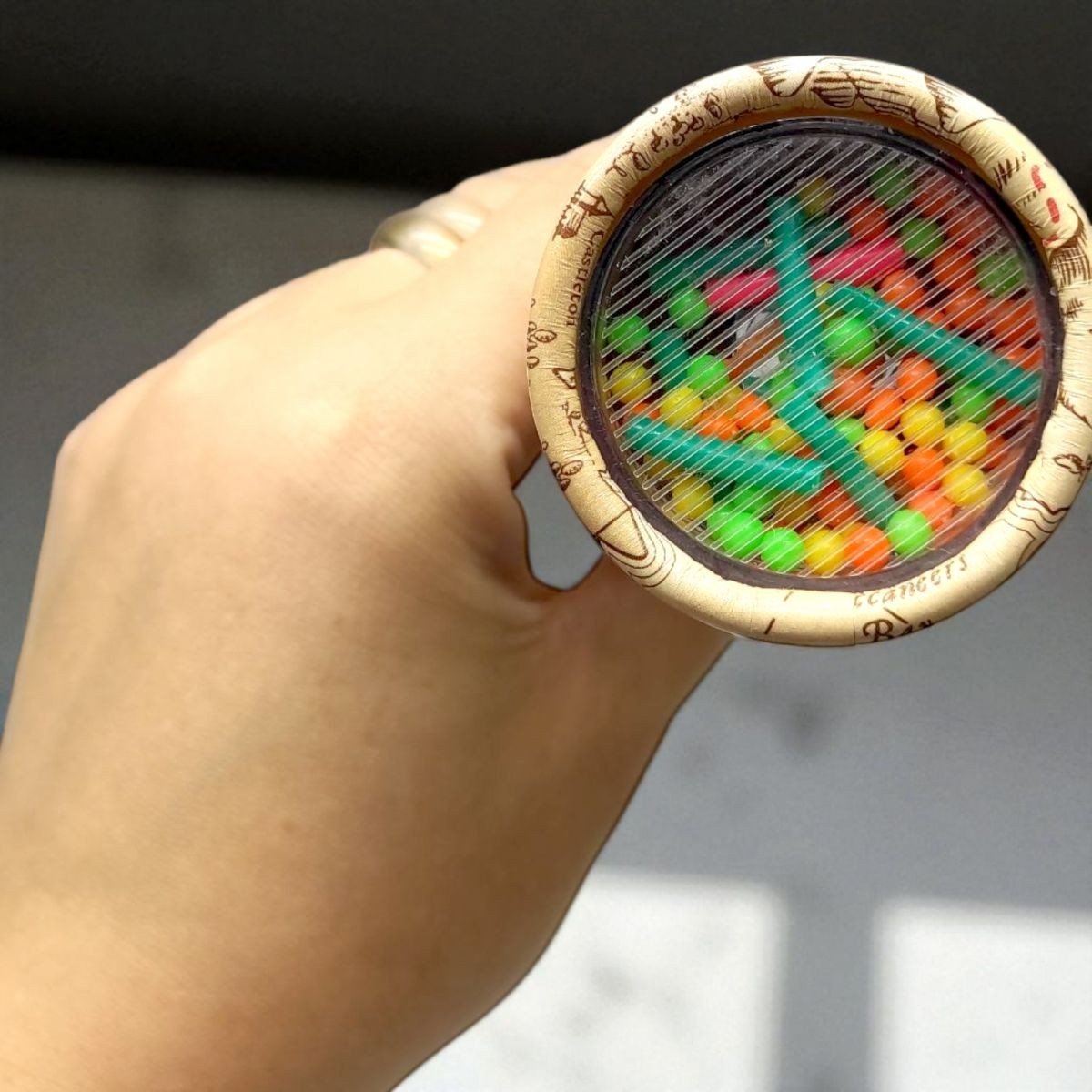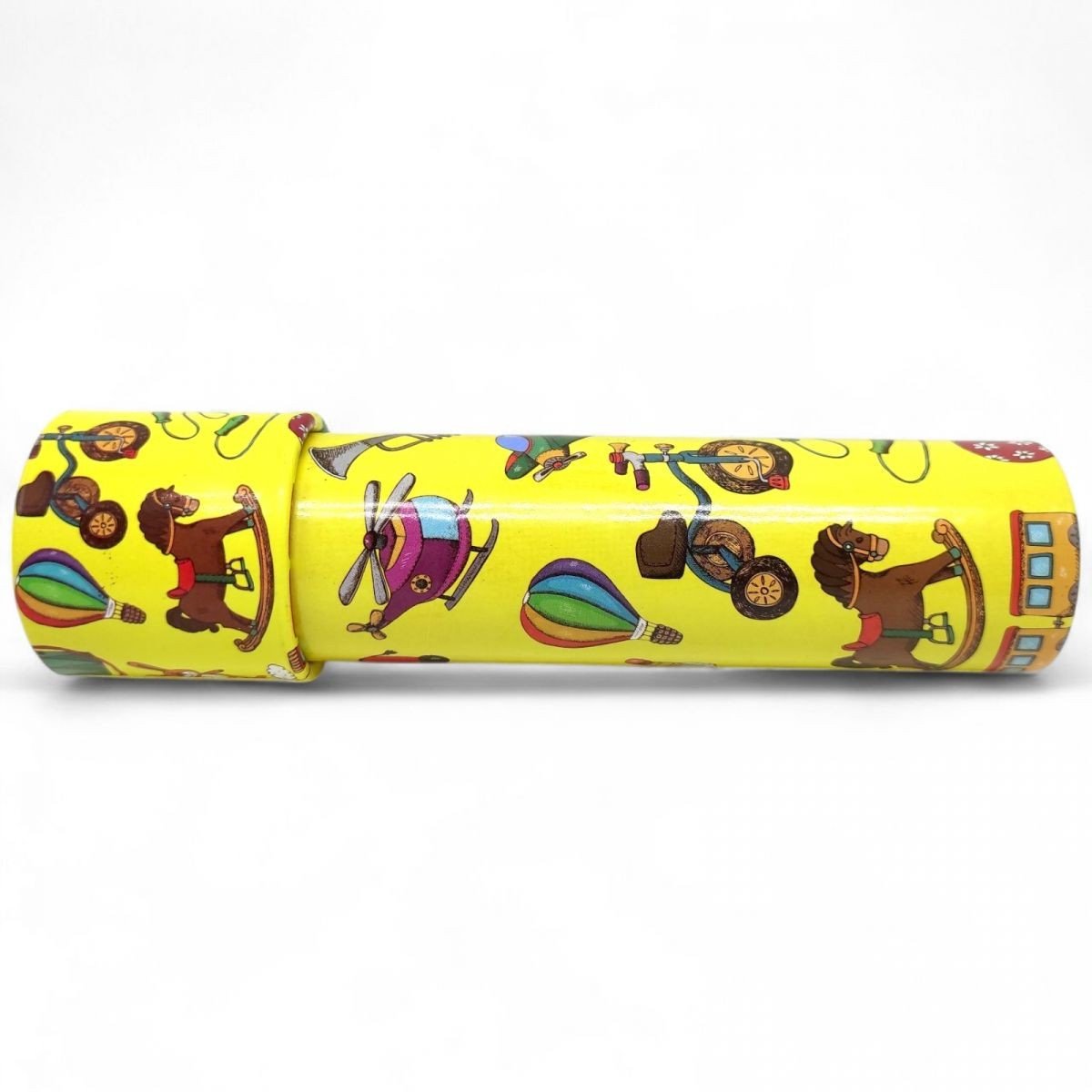 Іграшка калейдоскоп - це чудова можливість показати дитині, як працює оптична ілюзія, за допомогою простих обертів змінюється візерунок всередині. В серії присутні різноманітні забарвлення. Усередині - бісер та різноманітні фігурки, які допомагають склу створювати магію зміни кольору та форми картинки, що їх віддзеркалює.