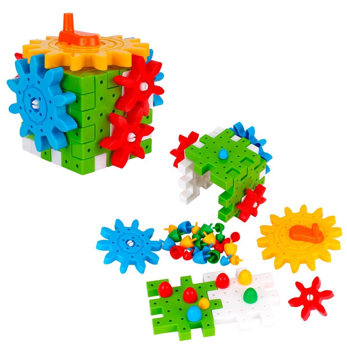 Розвиваюча іграшка-конструктор буде хорошим подарунком для малюка. З деталей можна зібрати кубик, на якому знаходяться шестерінки різного розміру. Виконаний з якісного пластику. Розмір кубика - 11х11 см.