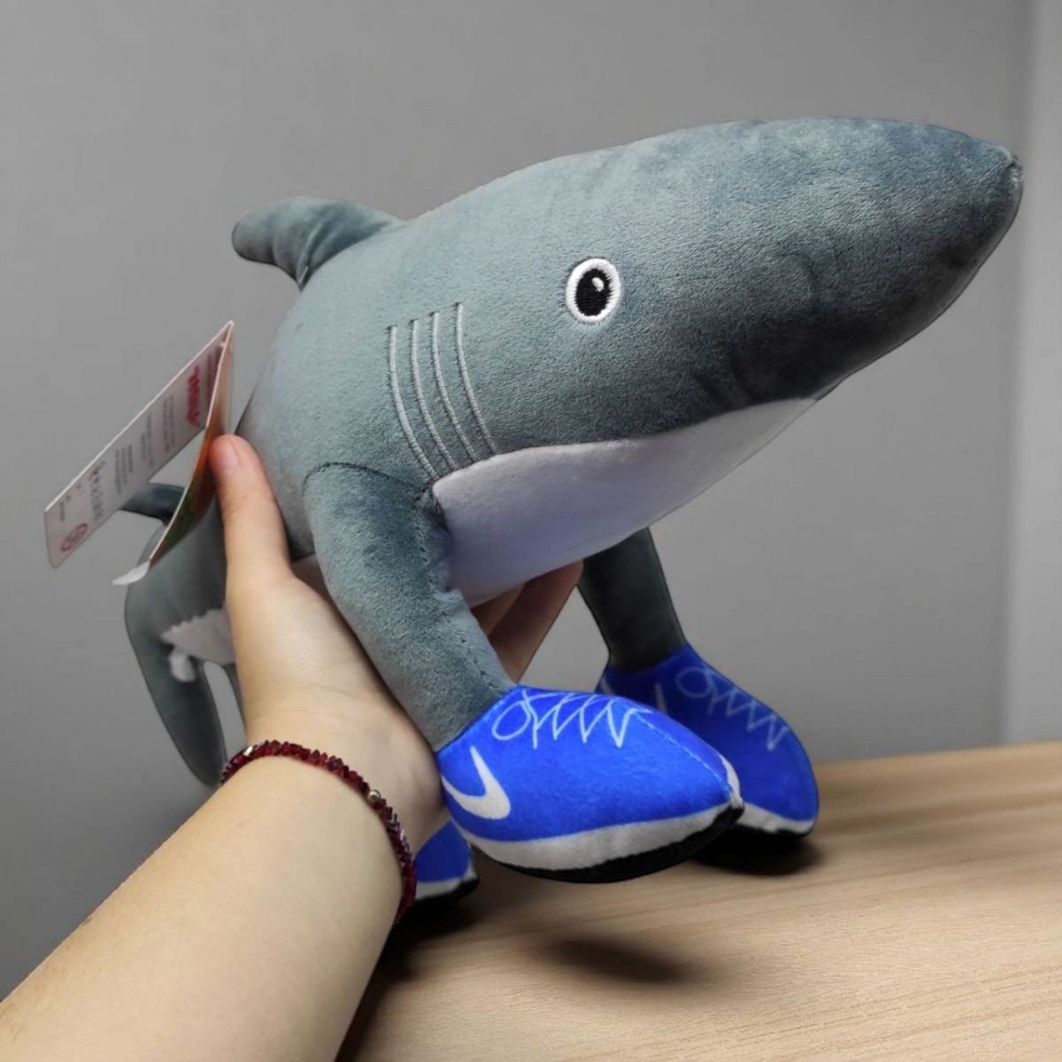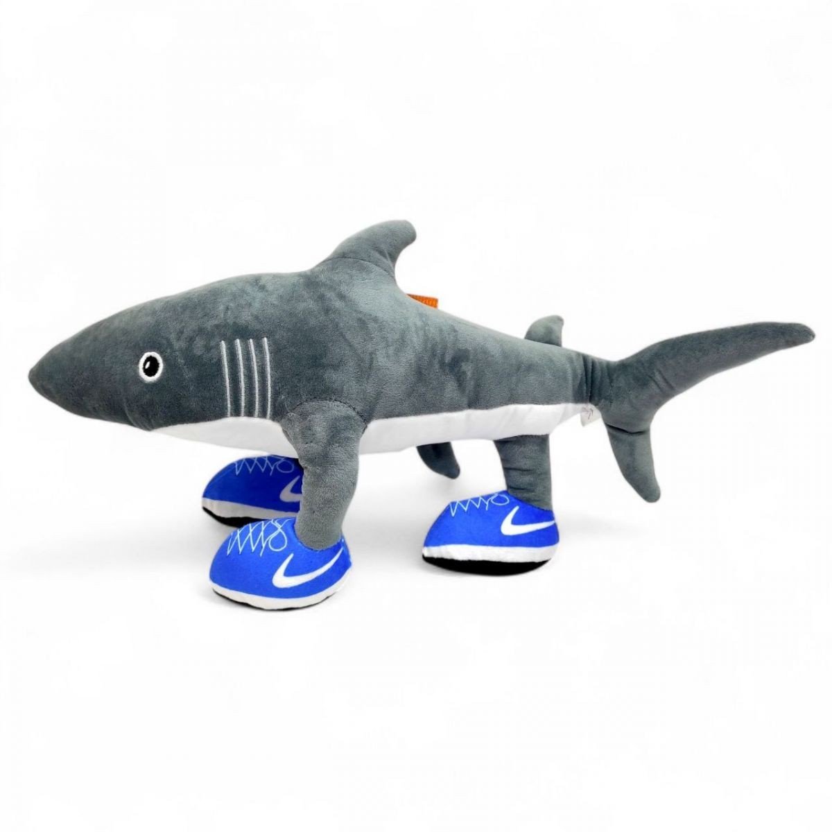 Тралалеро-тралала - акула в кросівках найк, персонаж популярного мему "Італійський брейнрот", створеного за допомогою штучного інтелекту. Абсурдний абсурд - це про них: від історії персонажів до їхнього зовнішнього вигляду, що й робить їх такими популярними. М’яка іграшка створена з комбінованих матеріалів.