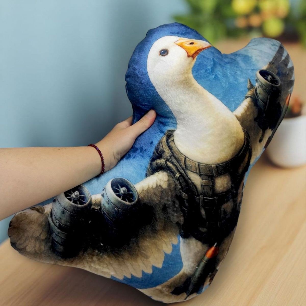 Бомбомбіні Гусіні - гусак, змішаний з винищувачем, подібно до Бомбардіро Крокоділо, його канонічного брата, Гусіні загинув наприкінці Другої Кроко-Пташиної війни за зраду брата. Ніхто за ним не сумував. Персонаж популярного мему "Італійський брейнрот", створеного за допомогою штучного інтелекту. Абсурдний абсурд - це про них: від історії персонажів до їхнього зовнішнього вигляду, що й робить їх такими популярними. М’яка іграшка створена з комбінованих матеріалів. Рекомендовано для діток від 4 років.