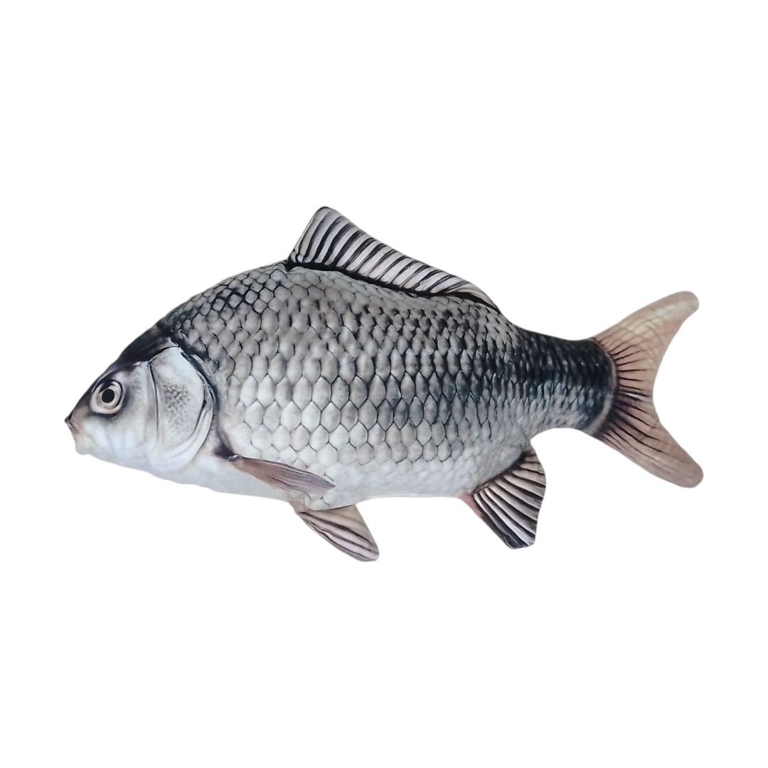 Велика мʼяка іграшка у вигляді карася завдовжки 50 см. Реалістичний та деталізований дизайн робить її незвичайним подарунком, елементом декору або іграшкою для дітей. Мʼякий матеріал забезпечує комфортне використання, а великий розмір додає унікальності іграшці.