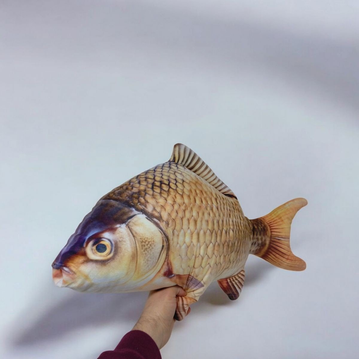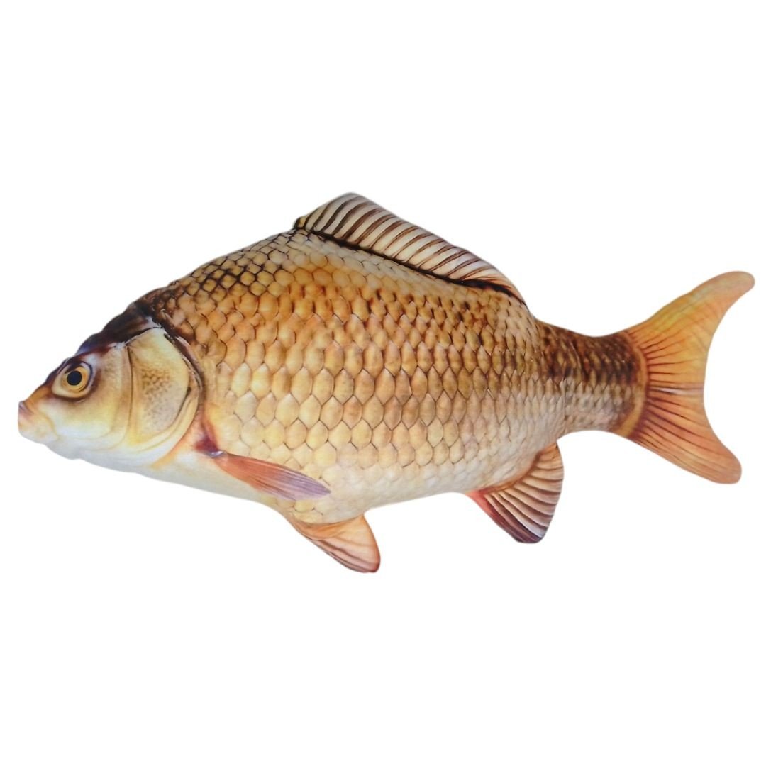 Велика мʼяка іграшка у вигляді карася завдовжки 70 см. Реалістичний та деталізований дизайн робить її незвичайним подарунком, елементом декору або іграшкою для дітей. Мʼякий матеріал забезпечує комфортне використання, а великий розмір додає унікальності іграшці.