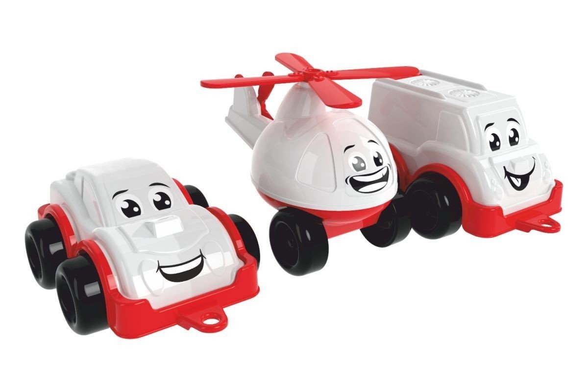 Бренд: Технок Колір: Білий Вага з упаковкою: 190 г Габарити в упаковці: 12.5 x 26.5 x 9 см Країна виробник: Україна Матеріал: Пластик Комплектація: Автомобіль, мікроавтобус, вертоліт