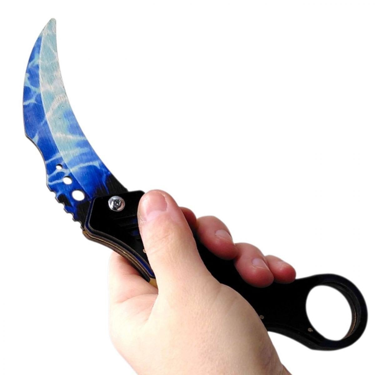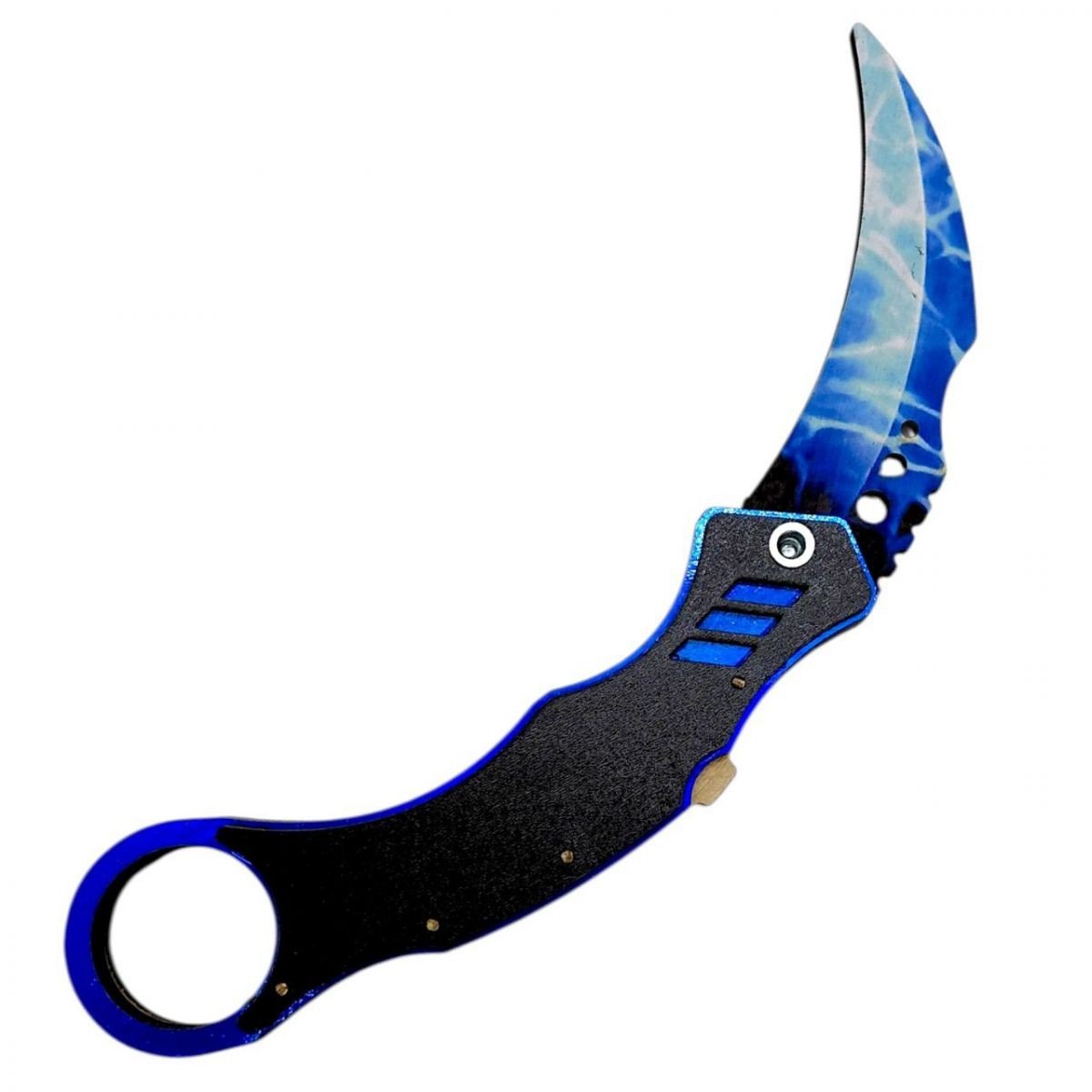 Іграшка-ніж «Mantis Glacier» - ефектна декоративна модель із сучасним дизайном у холодних блакитних відтінках. Стилізоване лезо з льодовим візерунком і ергономічна форма роблять виріб оригінальним сувеніром або доповненням до колекції.