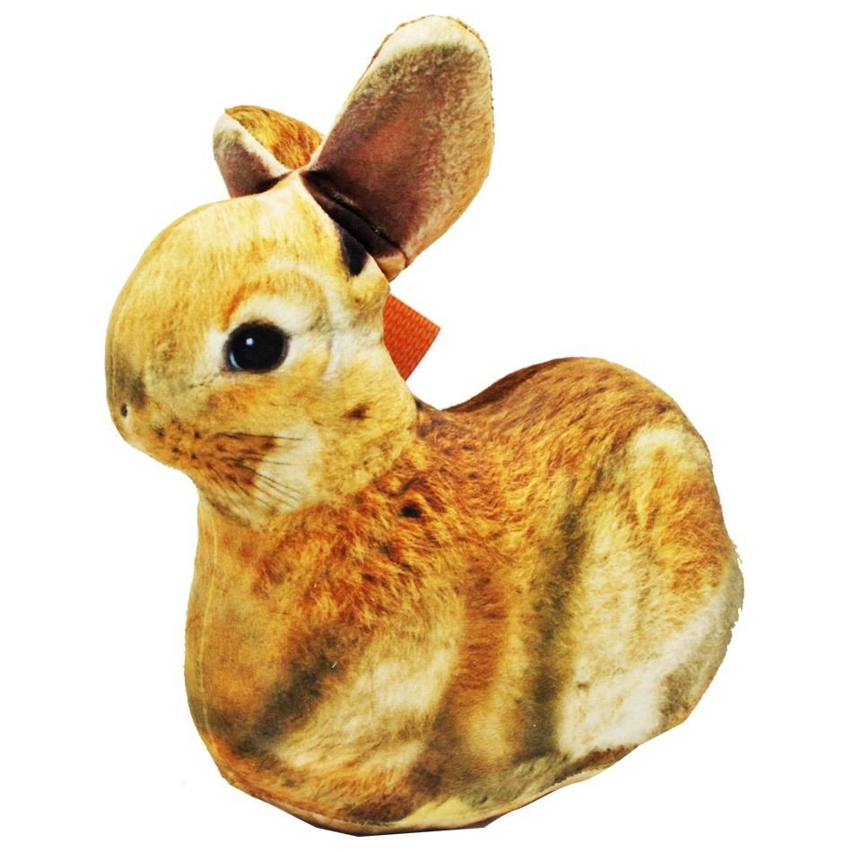 Оригінальна плюшева іграшка у вигляді кролика з реалістичним принтом. Іграшка легка та мʼяка, виконана з якісних матеріалів. Може бути цікавою прикрасою інтерʼєру. Розмір: 25х25х10 см.
