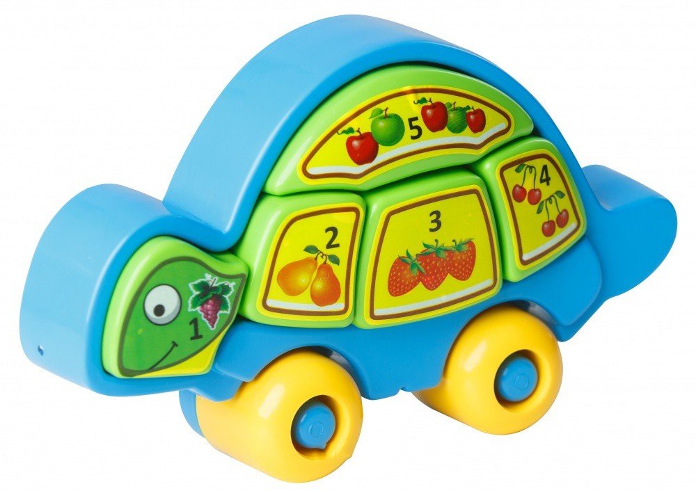 Іграшка розвиваюча "Черепаха-разумаха". Іграшка навчить вашого малюка рахувати, розпізнавати форми і кольору. Складається з основи у формі черепахи і 5 деталей, які необхідно вставити в форму в правильному порядку. На колесах.
