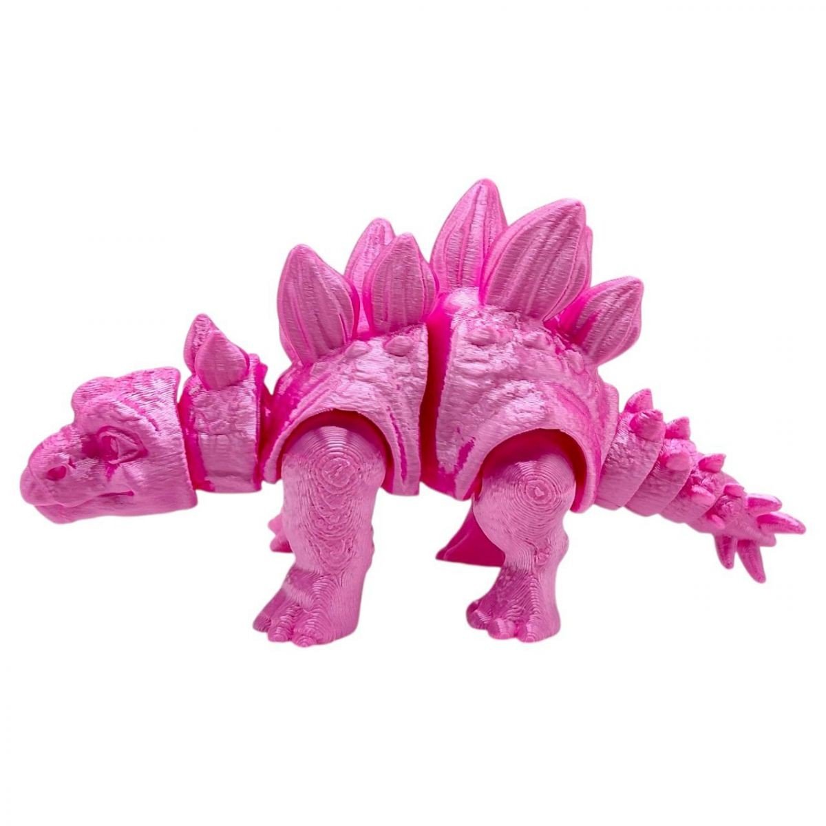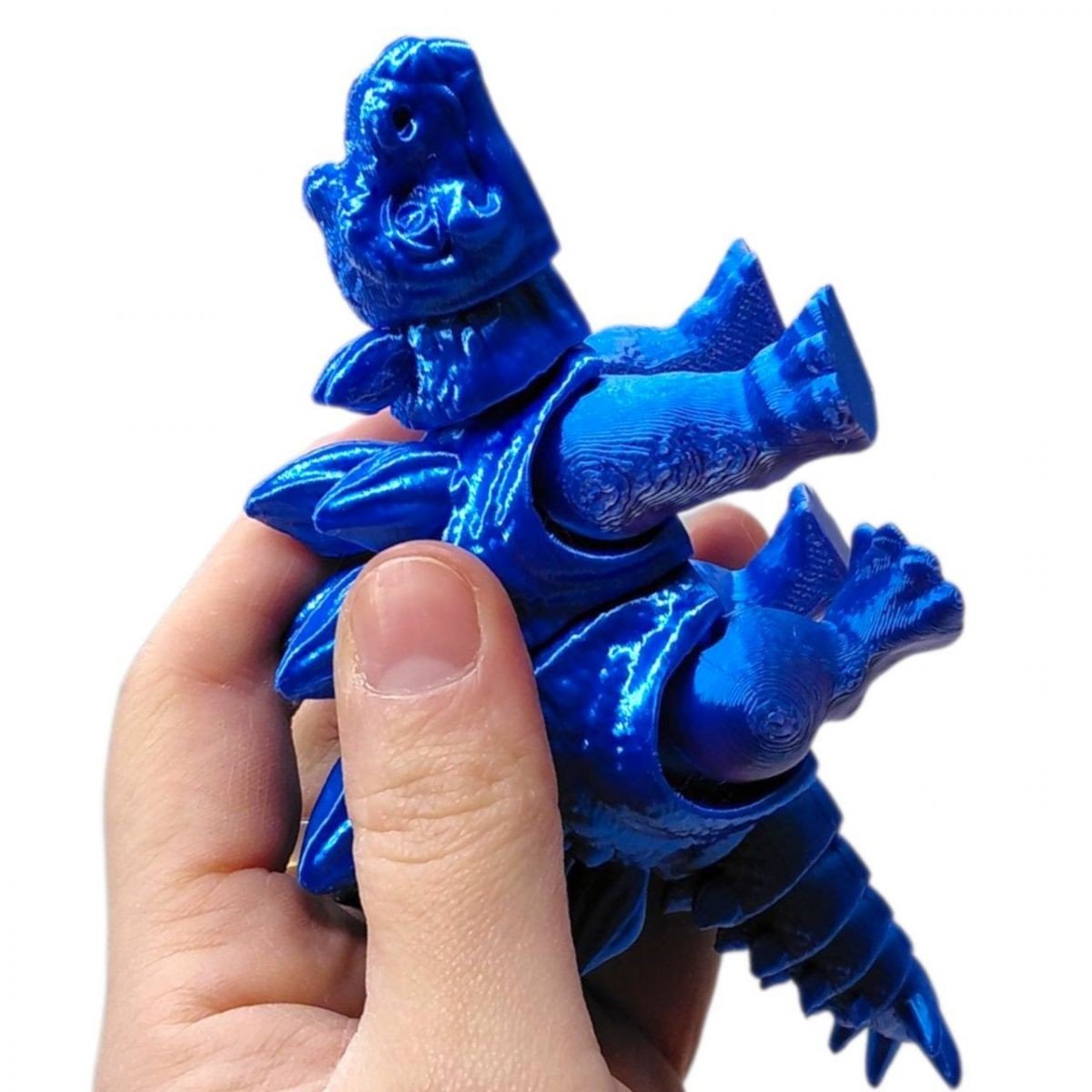Фігурка виконана у формі динозавра з характерними декоративними елементами на спині та хвості. Завдяки сегментованим з’єднанням іграшка гнеться та приймає різні положення.