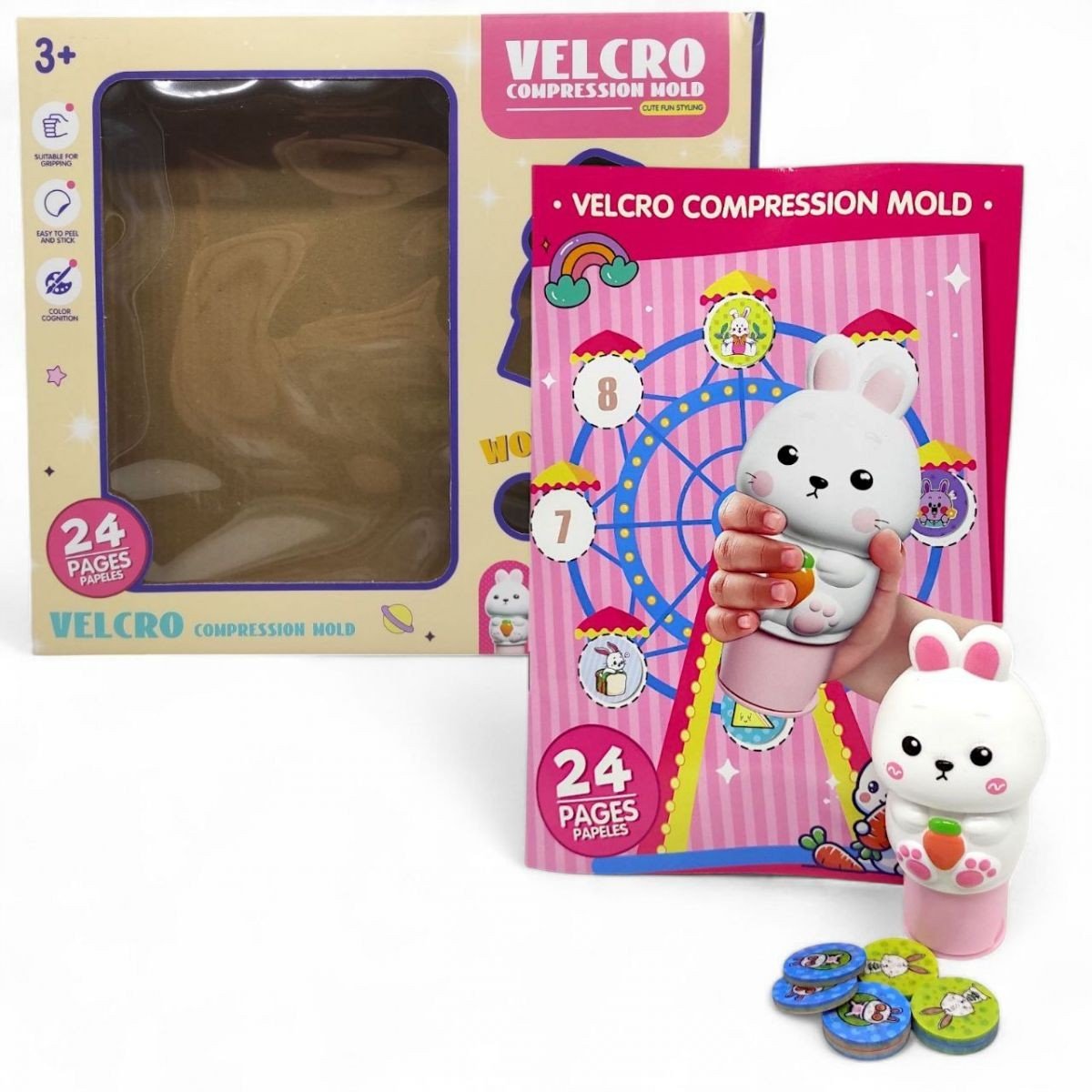Цей штамп — ідеальний інструмент для розвитку творчих здібностей дитини. Він дуже простий у використанні — просто зніміть наклейки з тильного боку, вставте їх у штамп, і все готово! Компактний і легкий дизайн дозволяє легко брати його з собою куди завгодно. У комплект входить барвистий альбом з великою кількістю місця, де дитина зможе потренуватися користуватися штампом.