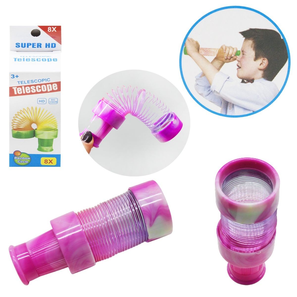 Цікава іграшка "Телескоп міні". Дві частини телескопа з'єднані між собою за допомогою пружинки. Лінза телескопа збільшує максимум в 8 разів. Для дітей від 3-х років.