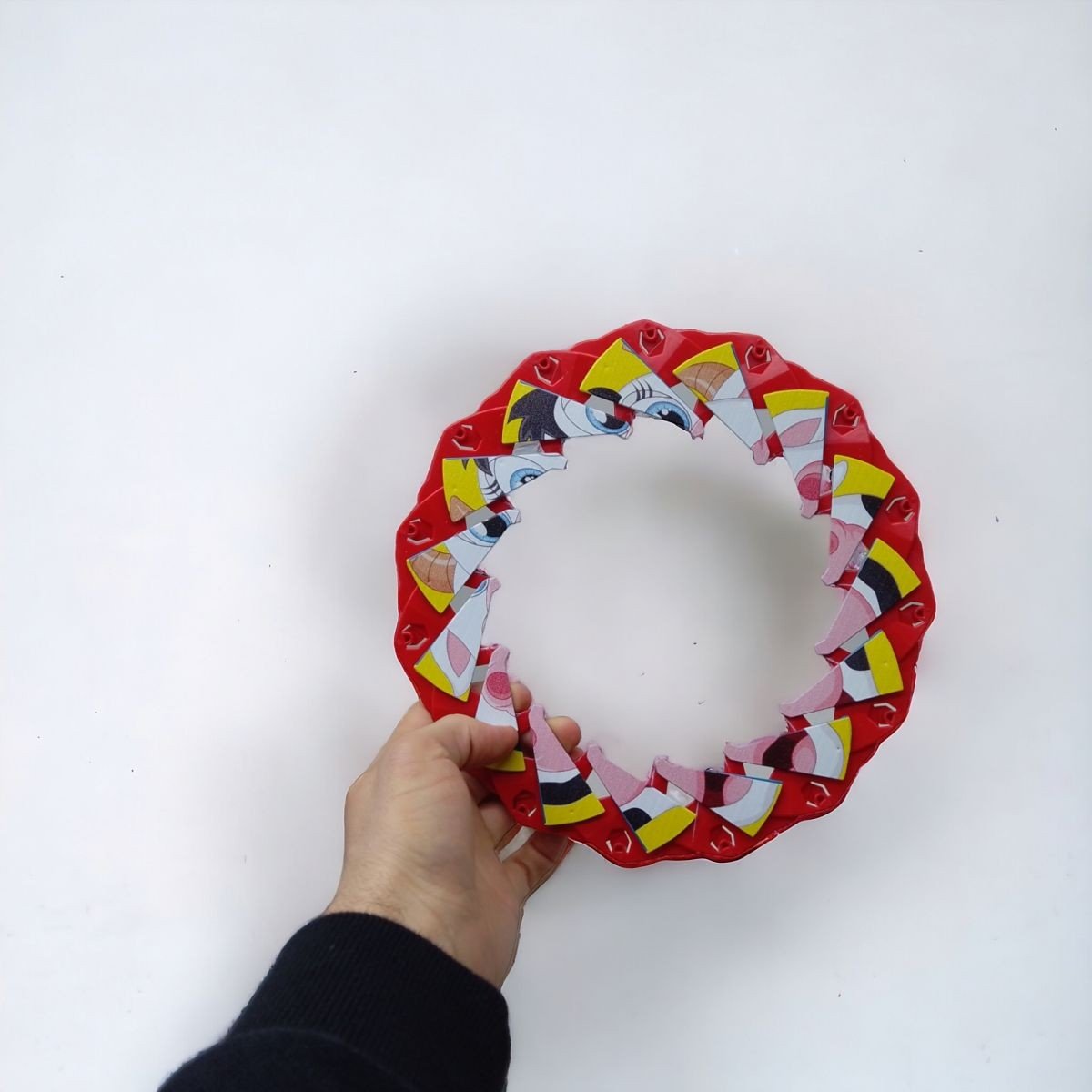 Цікава іграшка-запускалка круглої. Однак це не класична літаюча тарілка (фризбі). Дана іграшка представлена у формі диску, котрий "розкривається" у польоті за рахунок спеціальної конструкції. Діаметр диска в складеному вигляді - 13 см., у розгорнутому - 25,5 см. Виконано з якісного та міцного пластику та прикрашене яскравим малюнком.