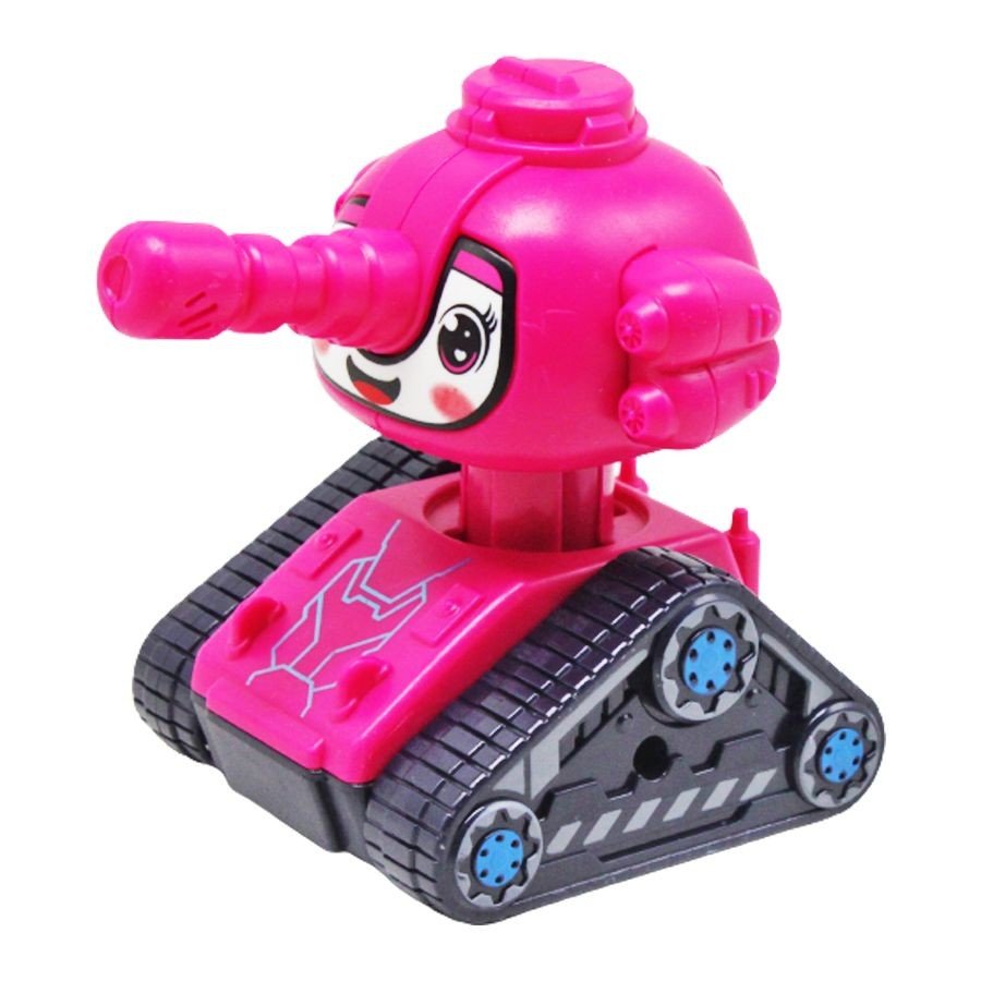 Оригінальна заводна іграшка у вигляді милого танку із кумедним личком. Особливістю іграшки є те, що заводний механізм спрацьовує при натисканні на голову іграшки - потрібно затиснути її вниз і після цього іграшка поїде. Розмір – 9х10х7 см. Для дітей від 3-х років.