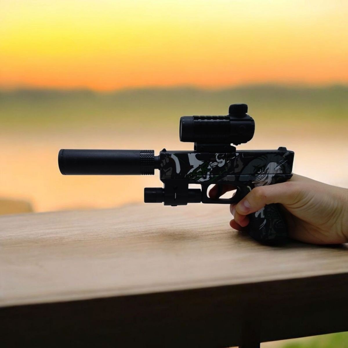 Опис Іграшкова зброя Пістолет з орбізами, глушник, лазерний приціл