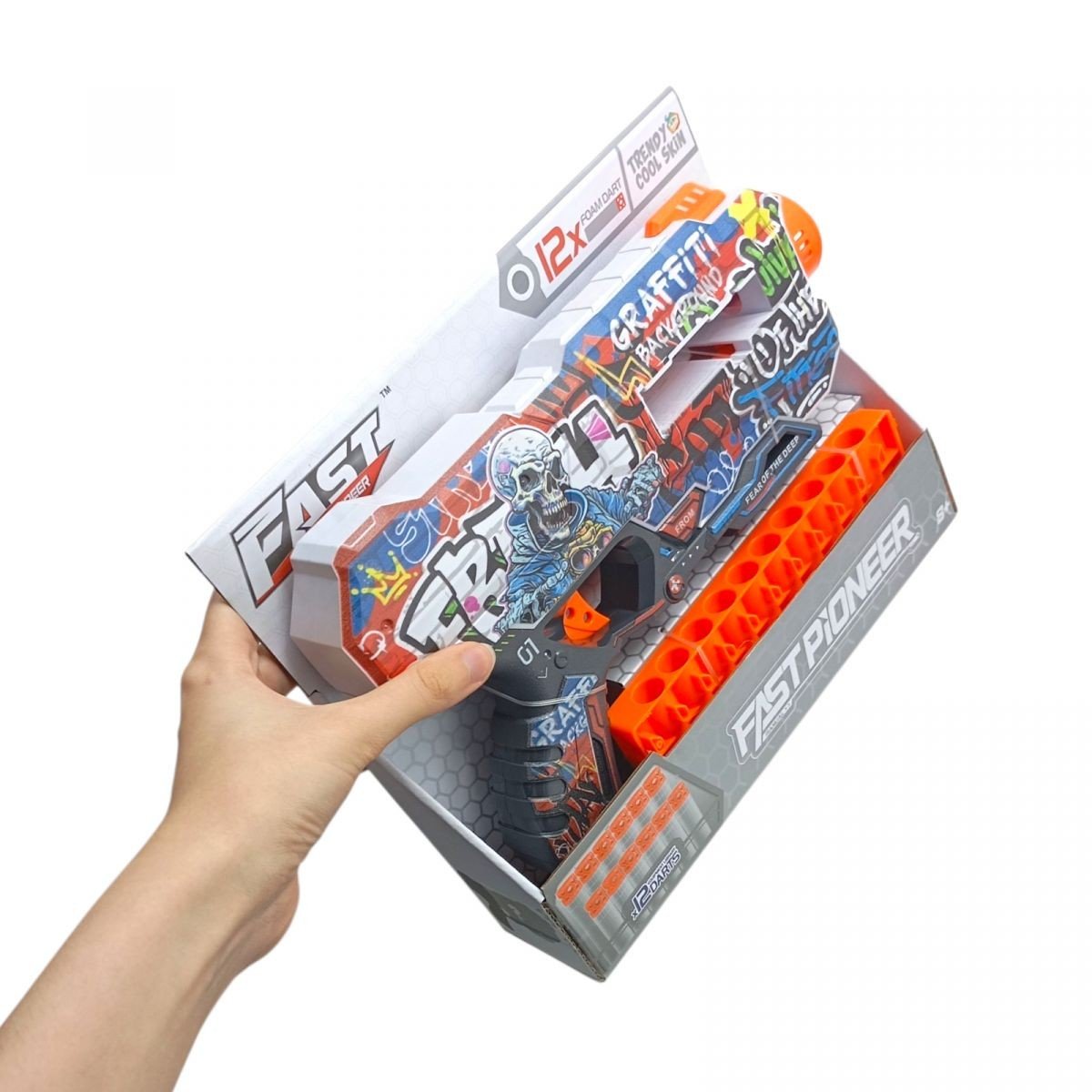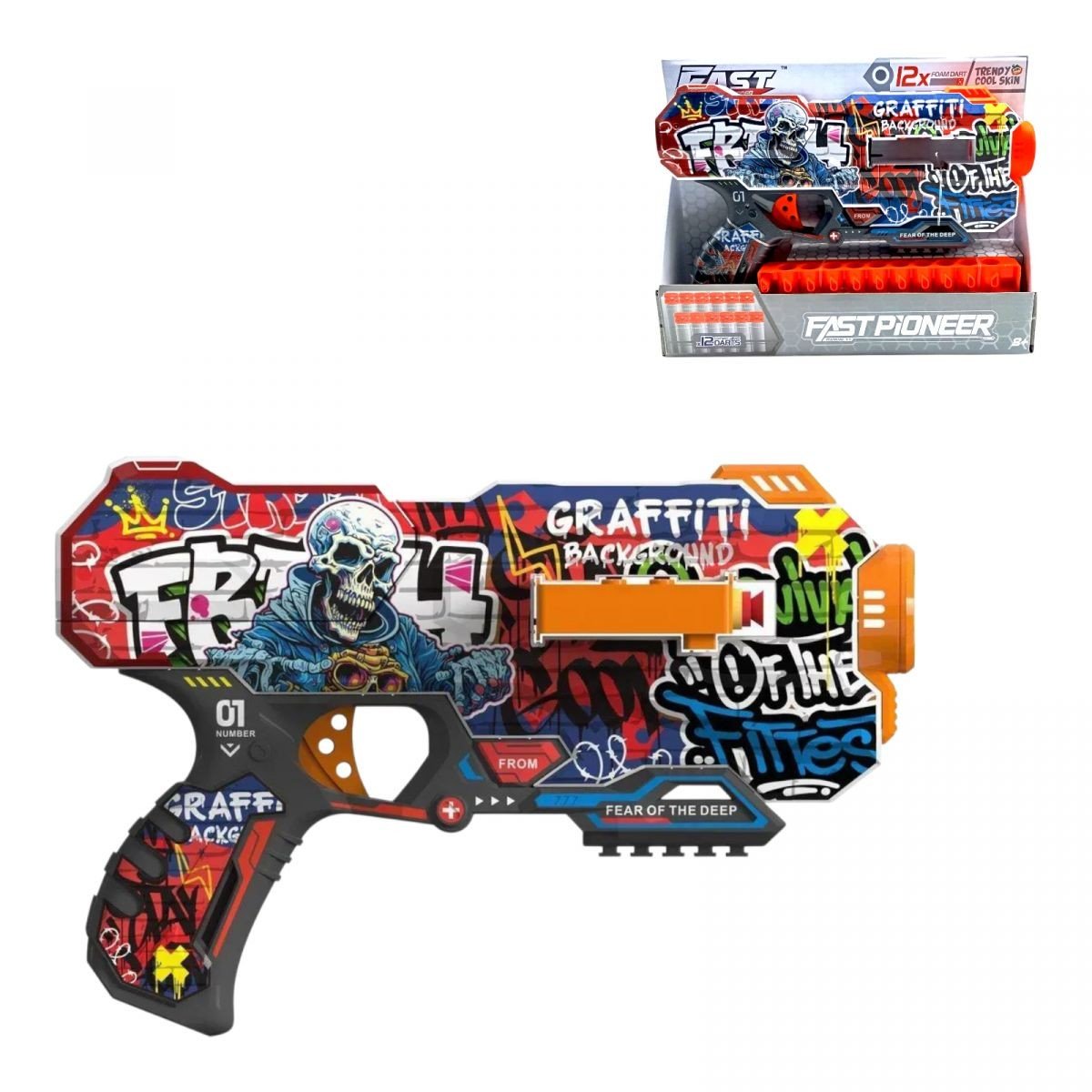Іграшковий пістолет автомат. барабан на батарейках з мʼяк. набоями Графіті (12 шт.) (28х17см)