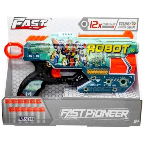 Опис Іграшковий пістолет (бластер) з барабаном та мʼякими патронами (28х17,4 см, коробка - 29х22х6,5 см)
