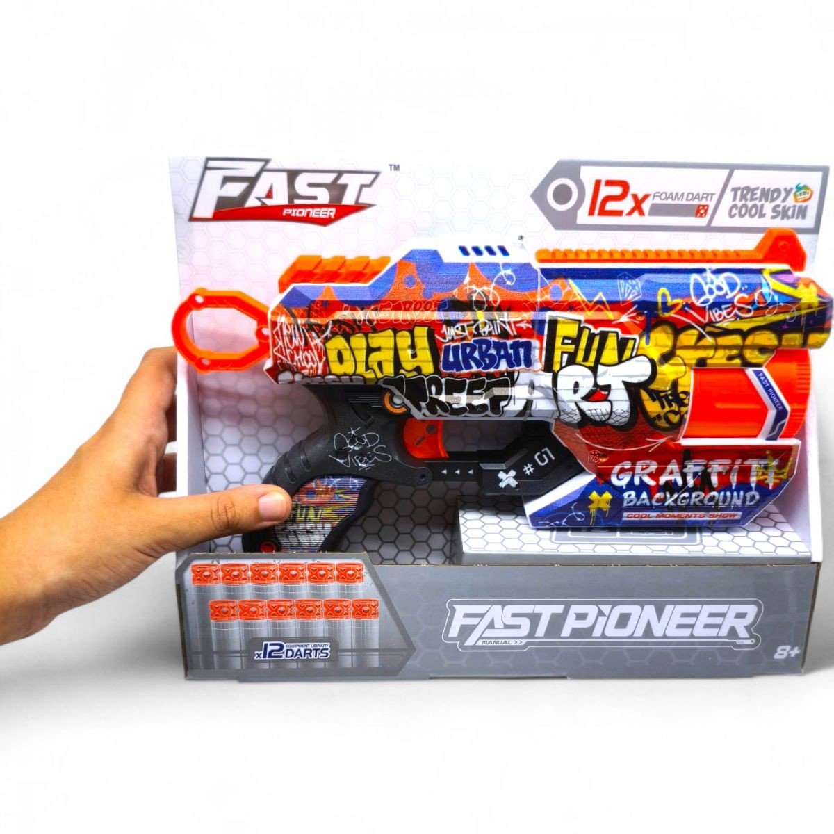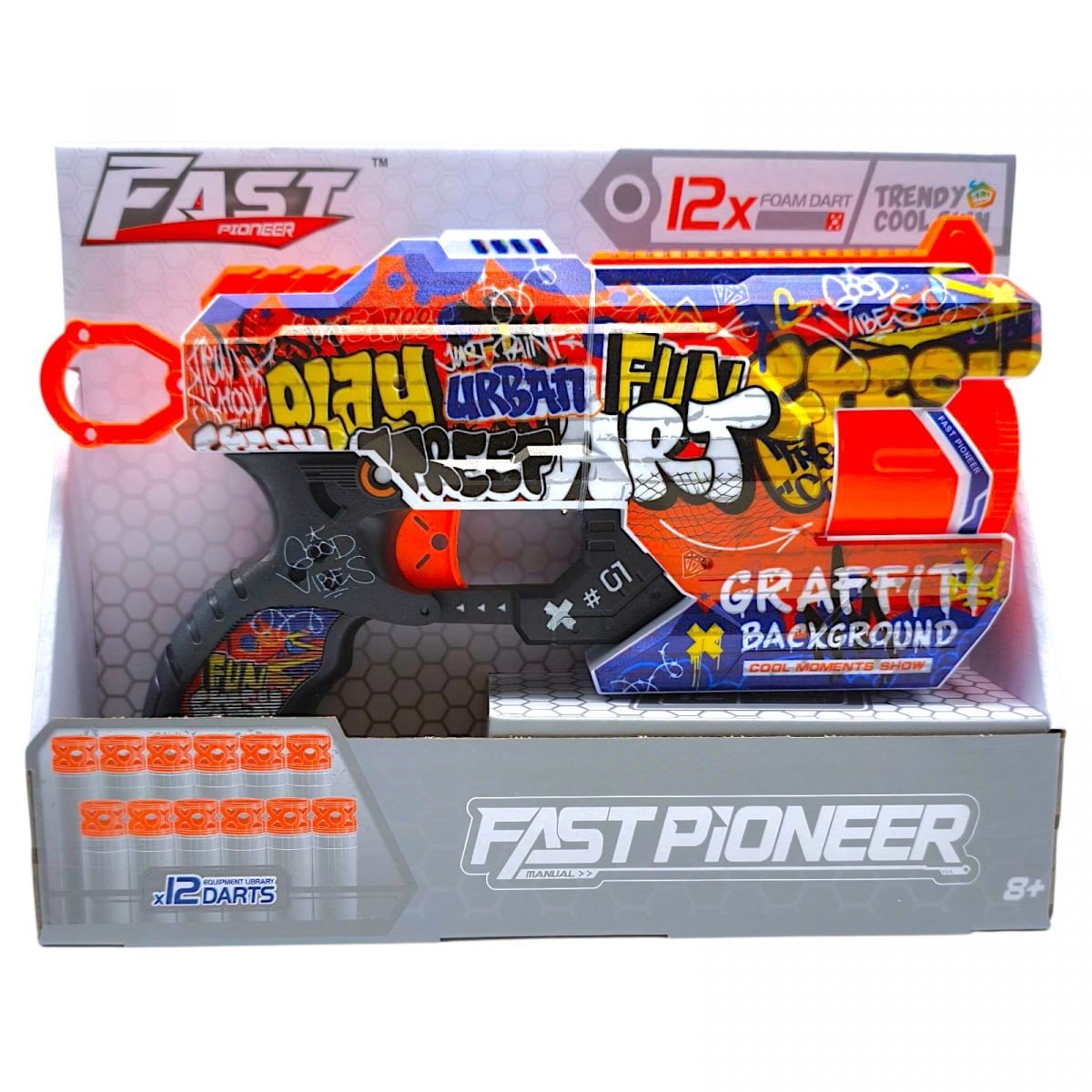 Іграшковий пістолет мех. з барабаном та мʼяк. набоями (12 шт.) (Графіті) (28 х 17,4см)