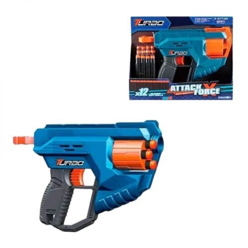 Іграшковий пістолет механічний з барабаном та мʼякими набоями (12 шт.) (25 х 17см)