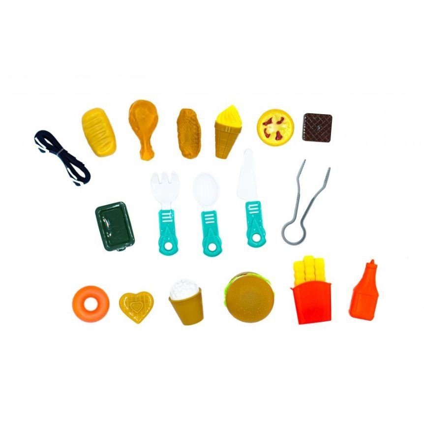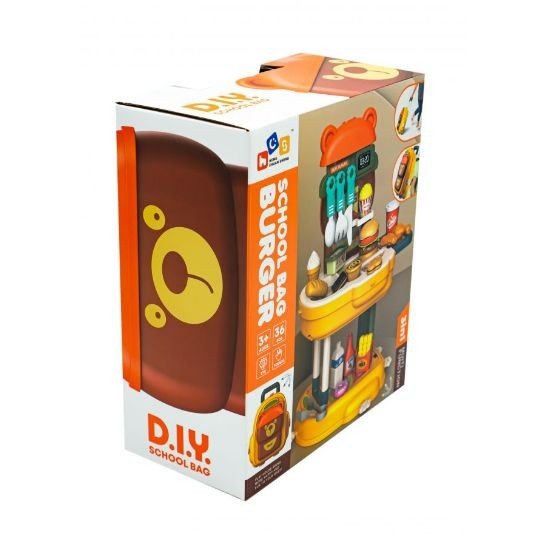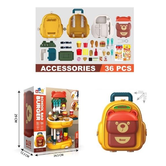 Опис Ігровий набір 3 в 1 - рюкзак, чемодан, ігровий столик "Бургер", 36 елементів