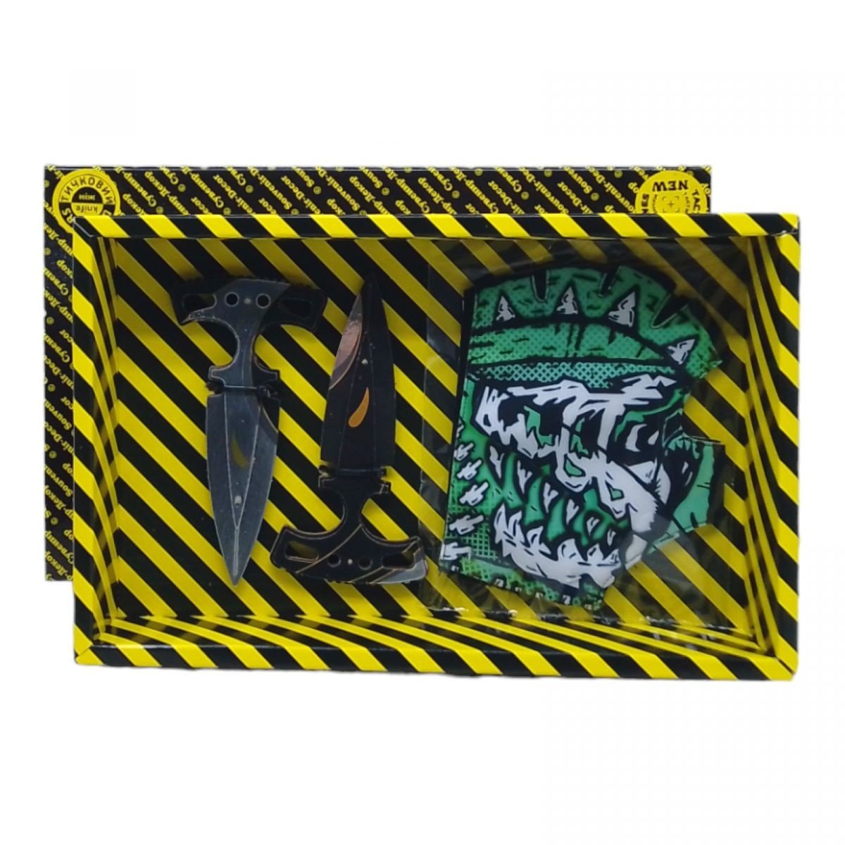 Ігровий набір "BOX" являє собою набір для ентузіастів ігор, що включає деревʼяний сувенірний ніж і ігрові рукавички, аналогічні тим, що використовуються в популярній грі CS: Counter-Strike. Ніж і рукавички створені для відтворення атмосфери гри і можуть використовуватися як елементи косплею або колекціонування. 2 брелоки у подарунок! *Рукавички можуть відрізнятися від вказаних на фото