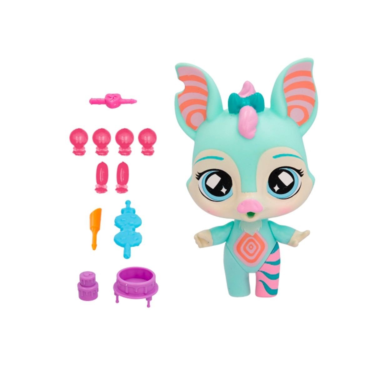 Ігровий набір Bubiloons - це ідеальний подарунок для творчих та креативних дітей. Ви познайомитеся з милими та дивовижними тваринками, які надувають барвисті кульки. Це не просто колекційна іграшка, а цілий набір для веселощів. У наборі є кульки, які Ваш герой може надувати. Необхідно вставити паличку-трубочку однією стороною до рота героя, а до іншої сторони прикріпити одну з кульок. Здавлюйте голову героя з двох сторін, і дивіться, як надувається кулька. Кожен герой має свій особливий аксесуар. Висота фігурки приблизно 10 см.