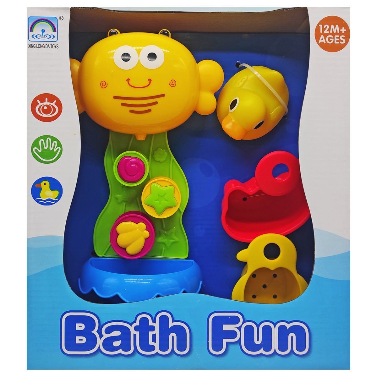 Дитячий набір для ванни, з яким процес купання стане ще цікавішим. У комплекті є яскрава установка-водоспад на присосці, дві чашки з отворами в денцях та гумова качка. Якщо залити воду в отвір на установці, вона буде весело стікати вниз по шестерням. Водоспад можна прикріпити до кахлю або стінки ванни. Розмір: 26х14х6 см.