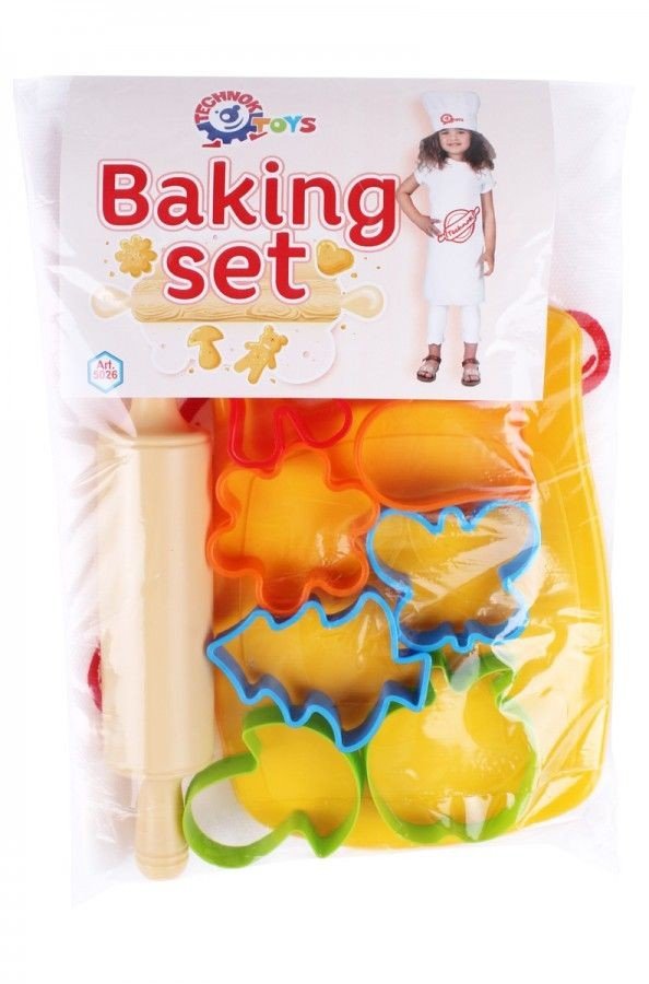 Ігровий набір для випічки буде цікавим подарунком для дитини. У наборі є все необхідне для створення кулінарних шедеврів: 8 кольорових формочок, дощечка і качалка, а так же, фартушок і ковпак кухаря. Виконано набір з якісних і безпечних матеріалів. Для дітей від 3-х років