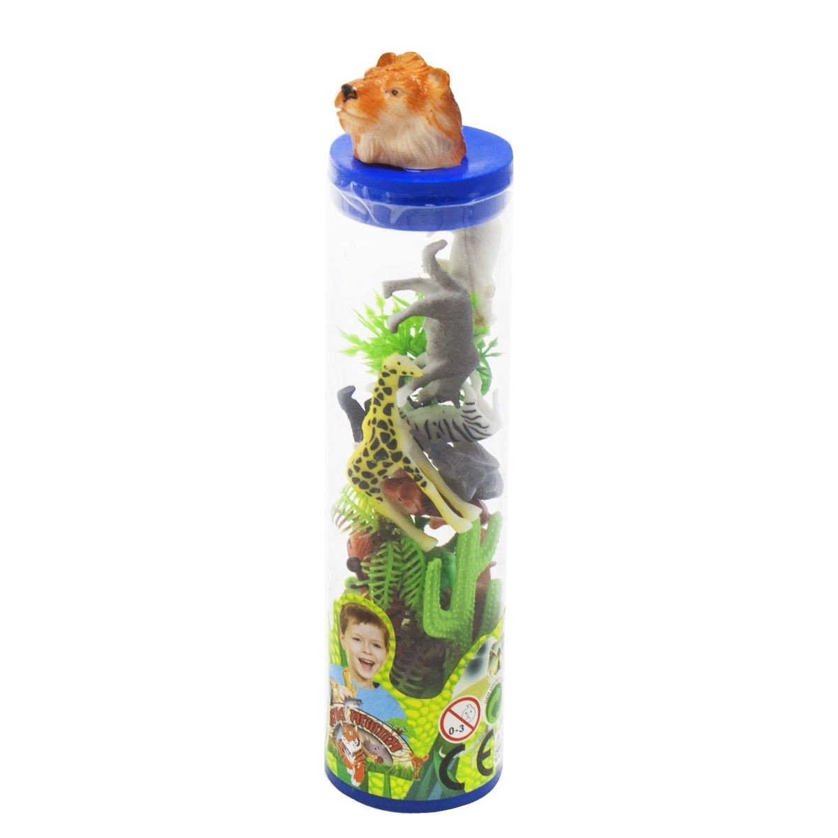 Ігровий набір тварин стане прекрасним подарунком для малюка від трьох років. Всередині є, приблизно, 10 видів різних фігурок (тварини / риби / земноводні / комахи / динозаври), а так само, інші об'єкти (кущі, дерева,рослиниі т.д.). Розмір однієї фігурки - 4-6 см. Виконано з якісних і безпечних матеріалів.