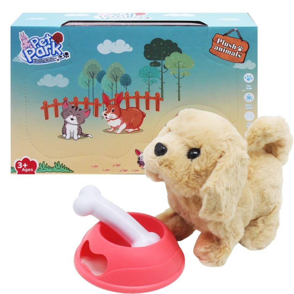 Інтерактивна іграшка "Собачка". Іграшка працює від 2-х батарейок АА (немає в комплекті). Ходить у різних напрямках і гавкає. У наборі є кісточка та миска для собачки. Розмір іграшки 17х11х16 см.